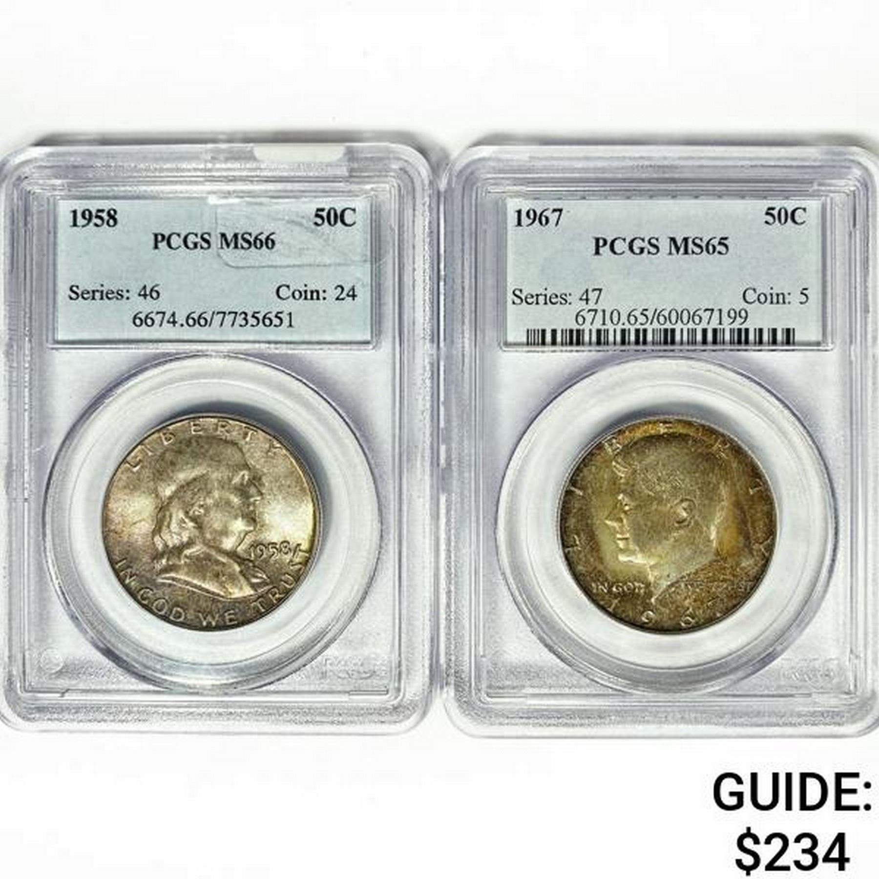 (2) US Silver Half Dollars PCGS MS (1958, 1967)