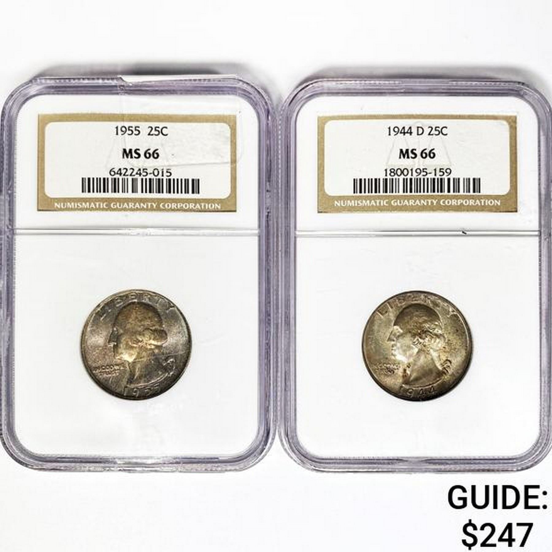 (2) US Washington Quarters NGC MS66 1944-1955
