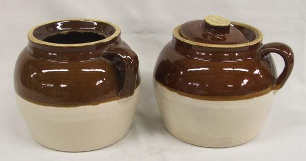 2 USA Bean Pottery Jars, 1 Lid. Measures approx. 6.25''Hx7''W. Buyers Pay Actual Shipping and Handling Charges(see terms and conditions for more information).