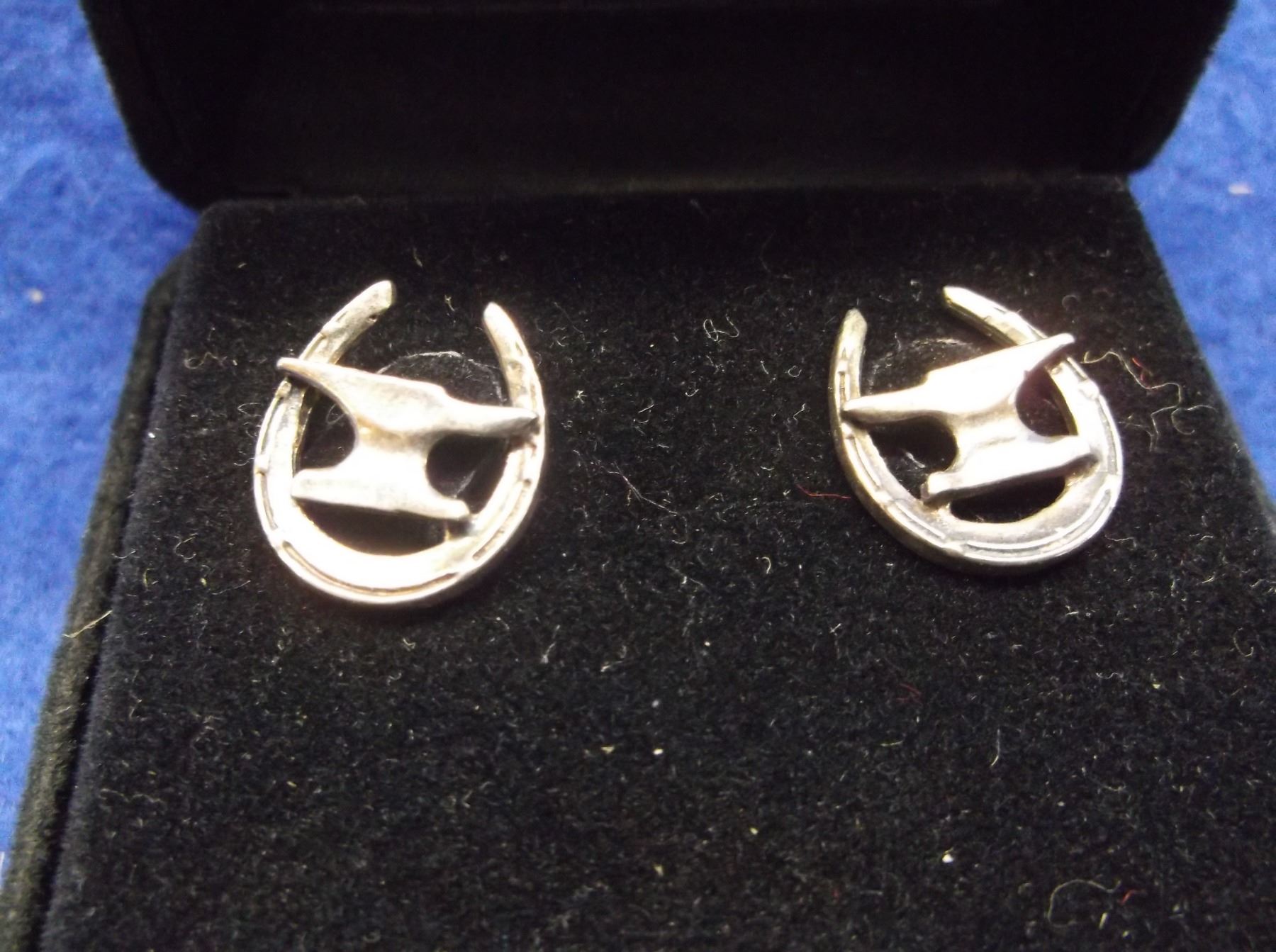 2 Unmarked Charles Wheat Sterling Horseshoe Anvil Tie Tacks