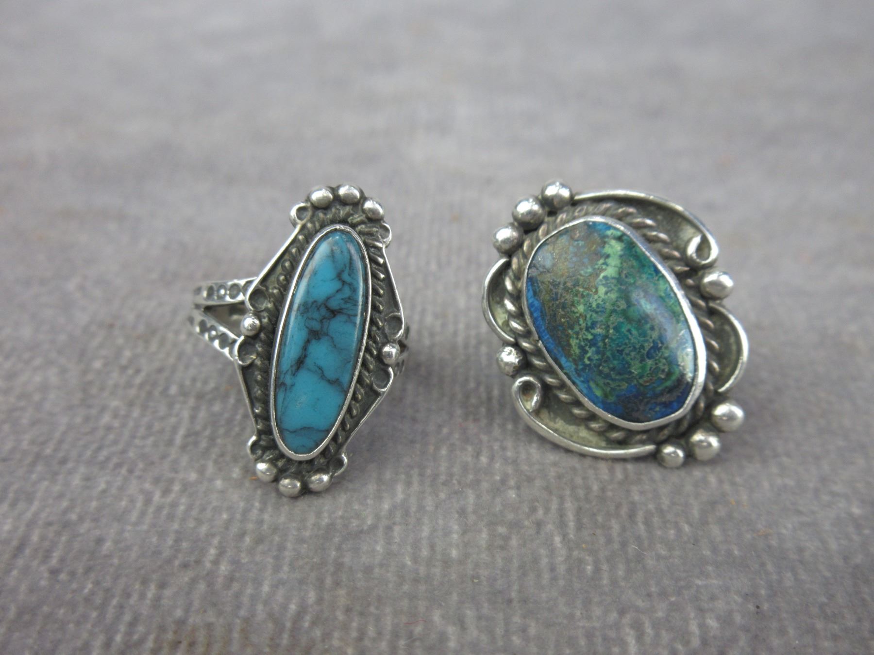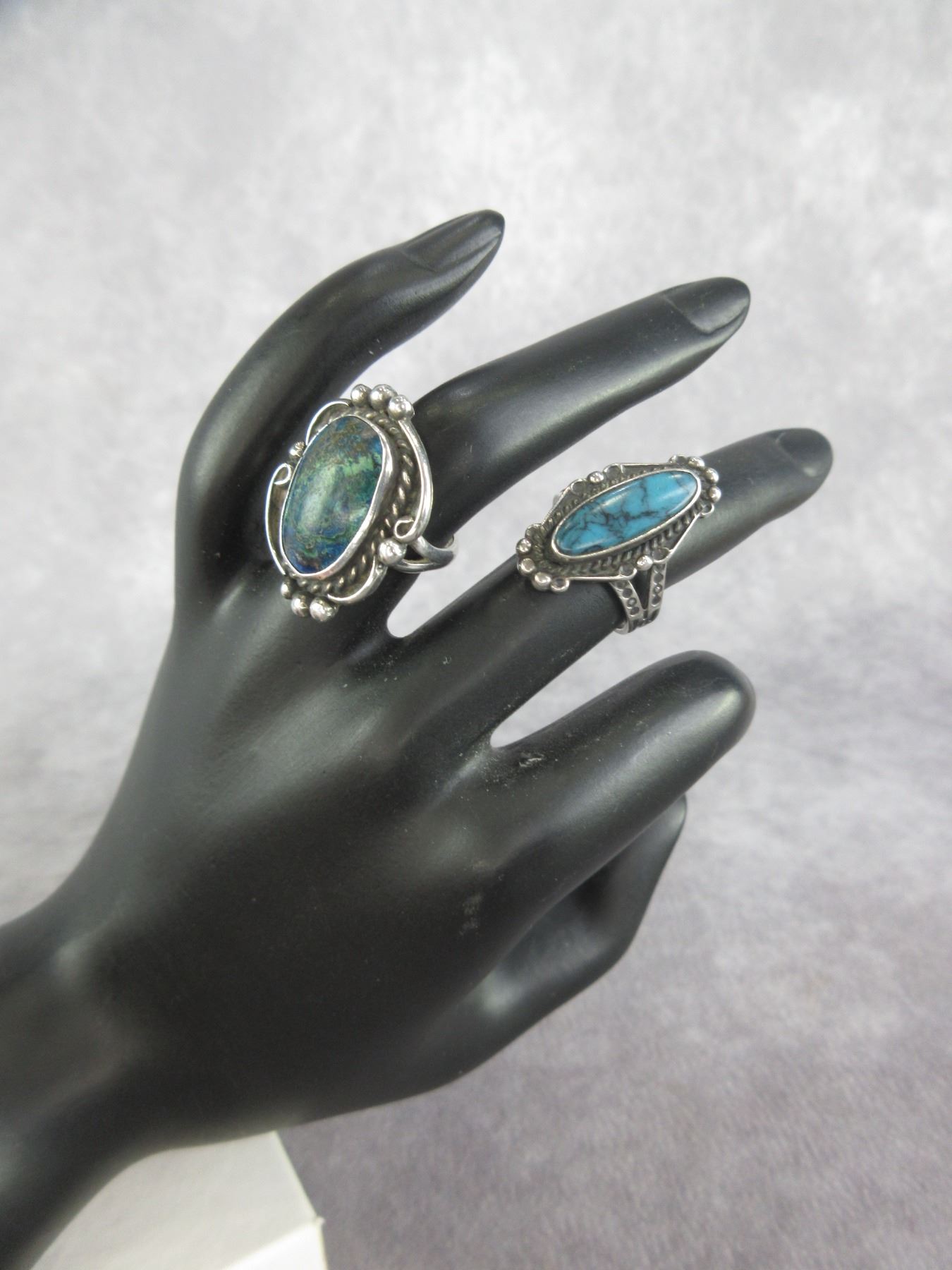 2 Unmarked Silver And Turquoise Lady Rings- Size 4.5 And 5.5