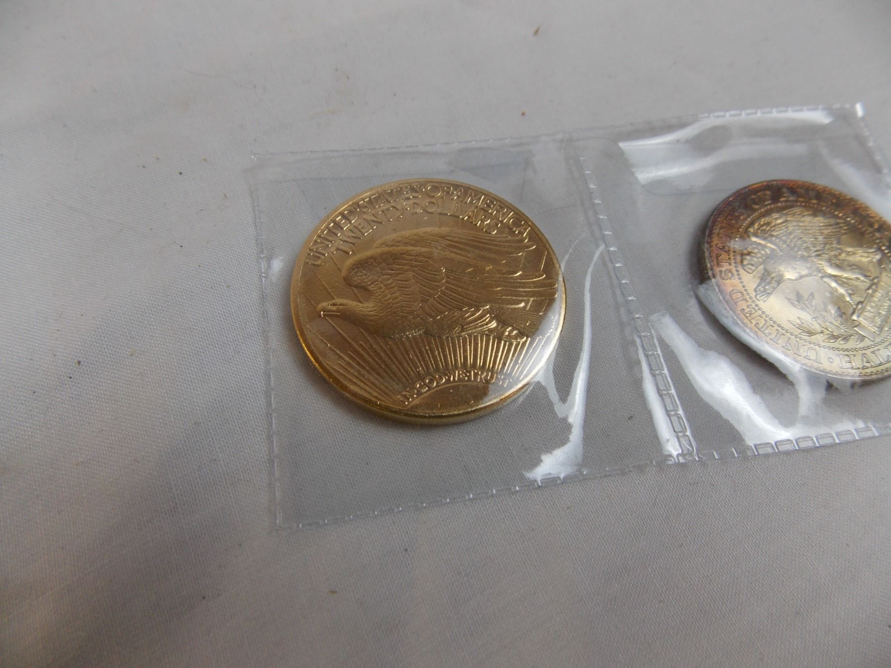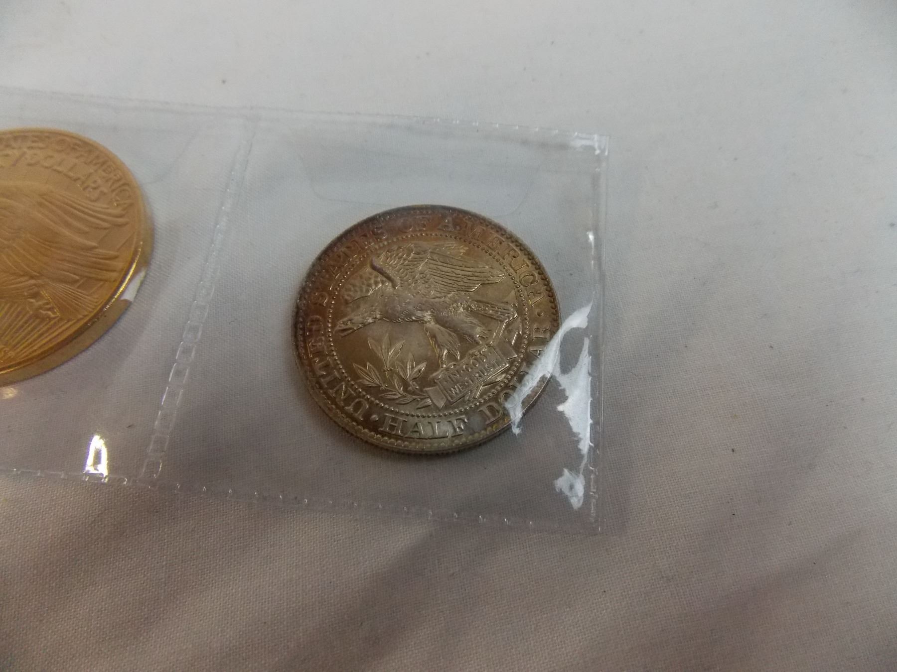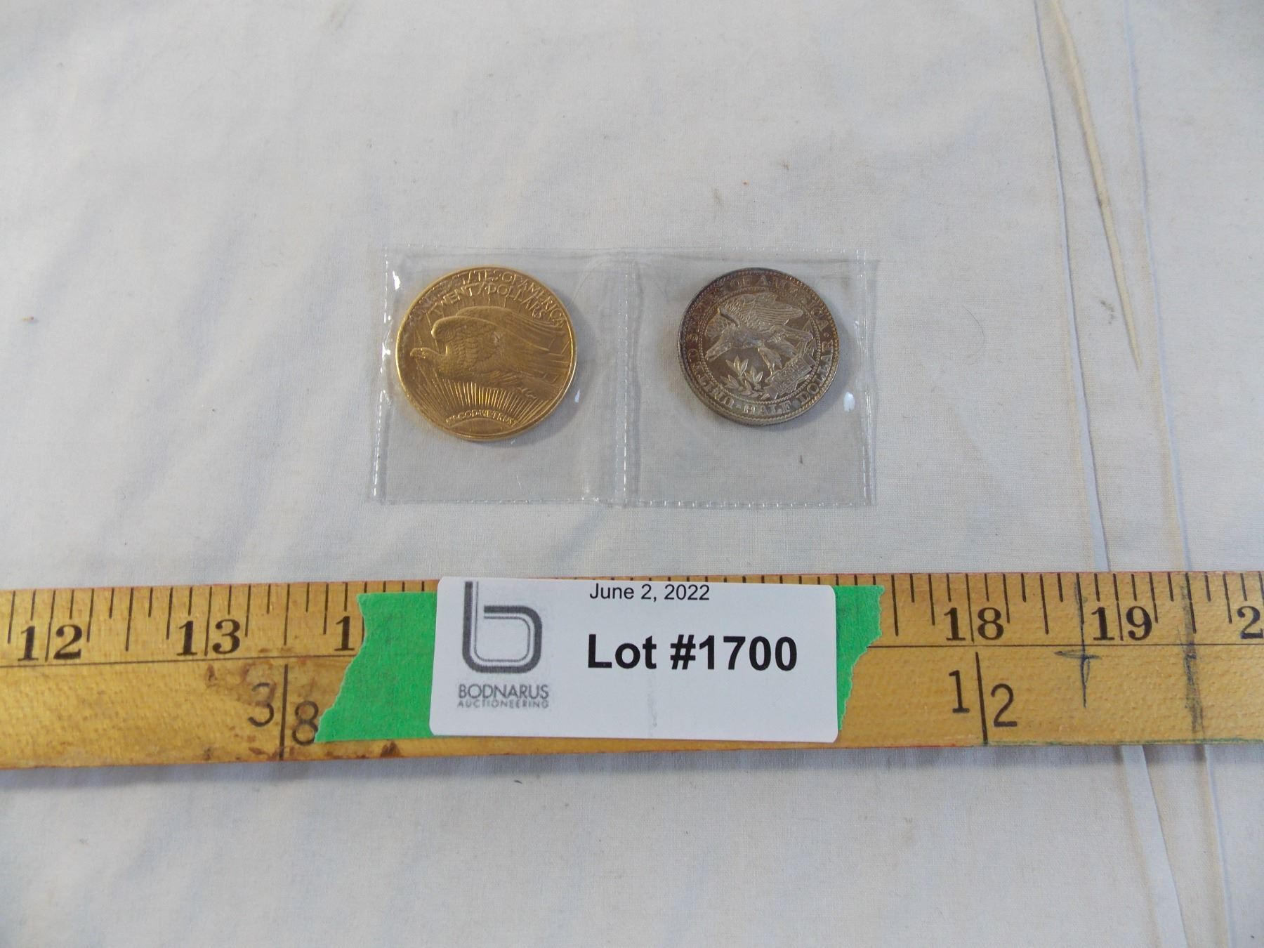 (2) Unverified Coin - 1877 US Half Dollar + 1908 20 Dollar (non-magnetic) - cannot guarantee authenticity