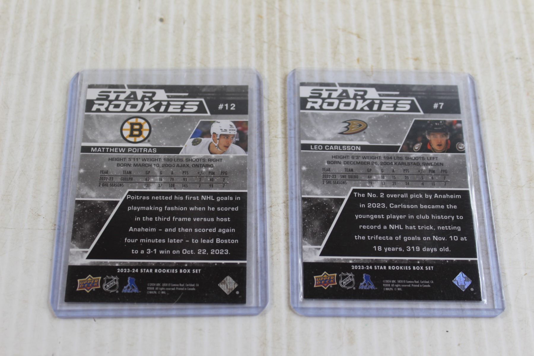 (2) Upper Deck Rookie Cards - Carlsson, Poitras