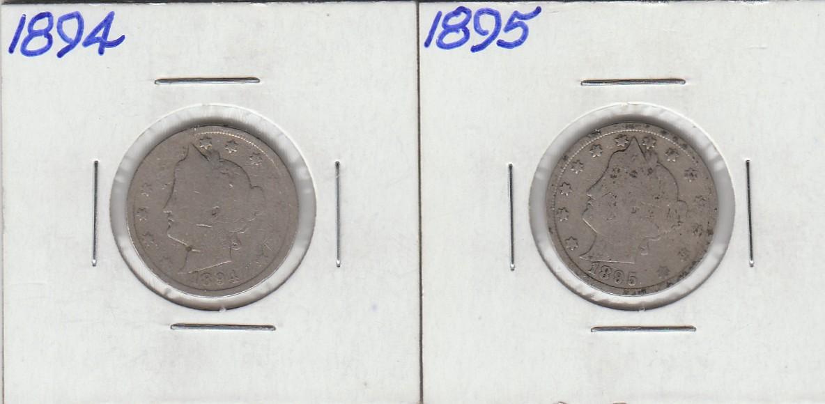 2 V NICKELS LIBERTY HEAD 1895 1894