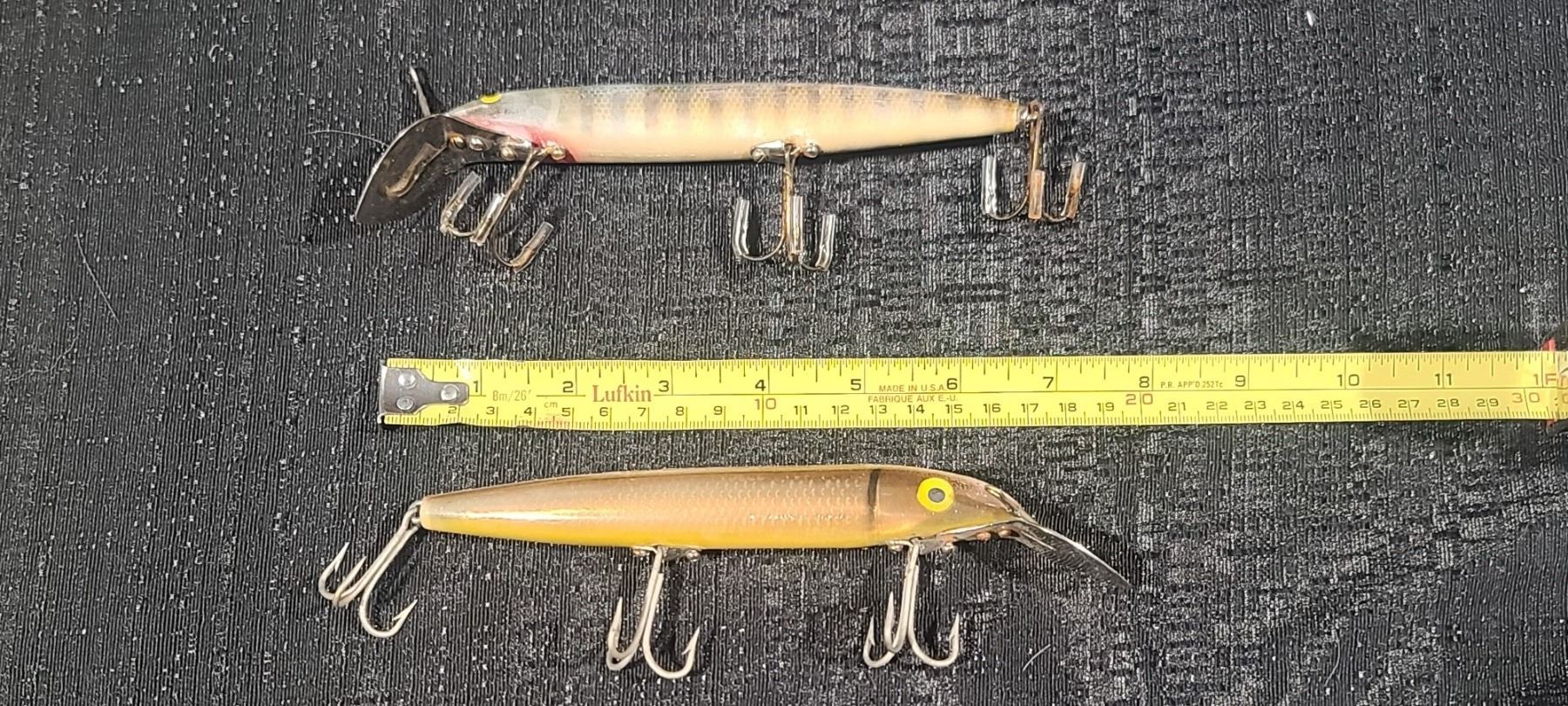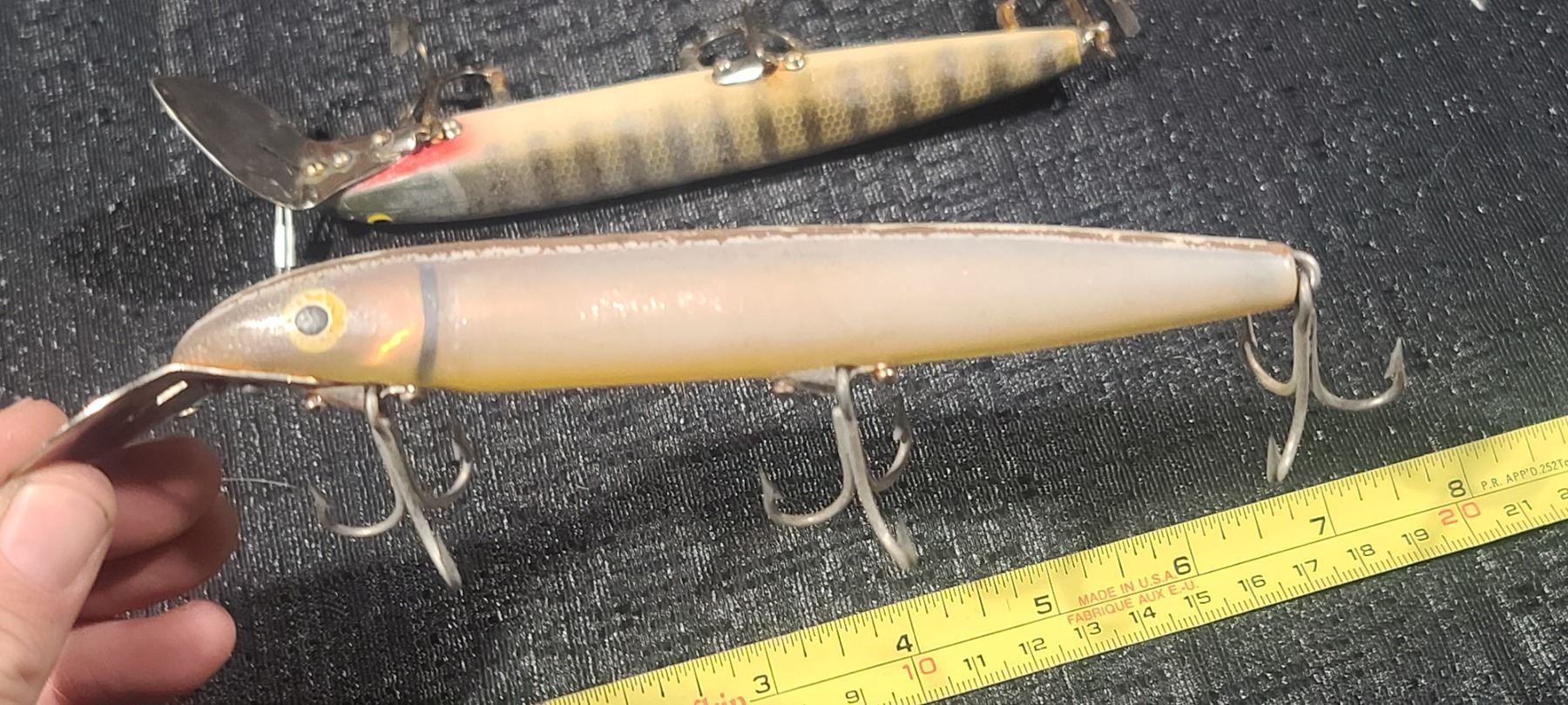 2 VINTAGE 6 INCH CISCO KID MUSKY LURES BY SUICK