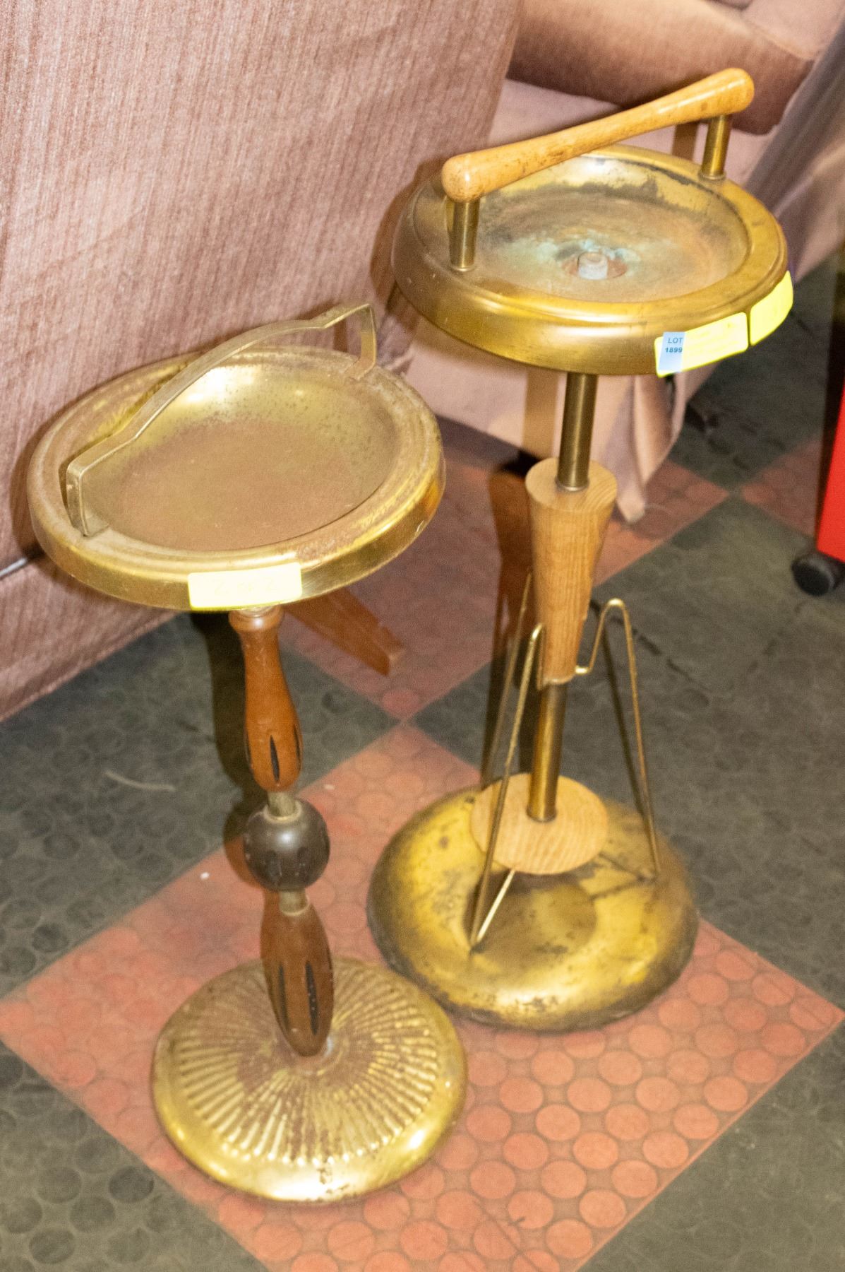 2 VINTAGE FLOOR ASHTRAY STANDSC - BRASS AND WOOD **ALL ITEMS MUST BE REMOVED BY 5PM SATURDAY, OCTOBER 21ST 2023. ALL REMAINING ITEMS WILL BE SUBJECT TO A $6.00 PER DAY STORAGE CHARGE. ANY ITEMS REMAINING AFTER MONDAY, NOVEMBER 6TH, 2023 WILL BE CONSIDERED FORFEITED. NO REFUNDS WILL BE ISSUED FOR FORFEITED ITEMS. TO SCHEDULE A PICK UP APPOINTMENT CLICK HERE