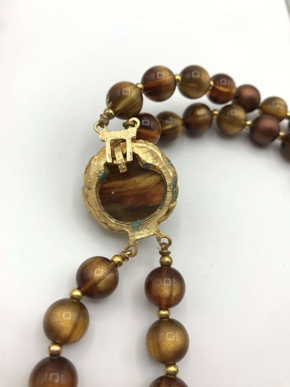 LAYERED TIGER EYE STYLE LAYERED WITH LARGE GOLD TONED PENDANT