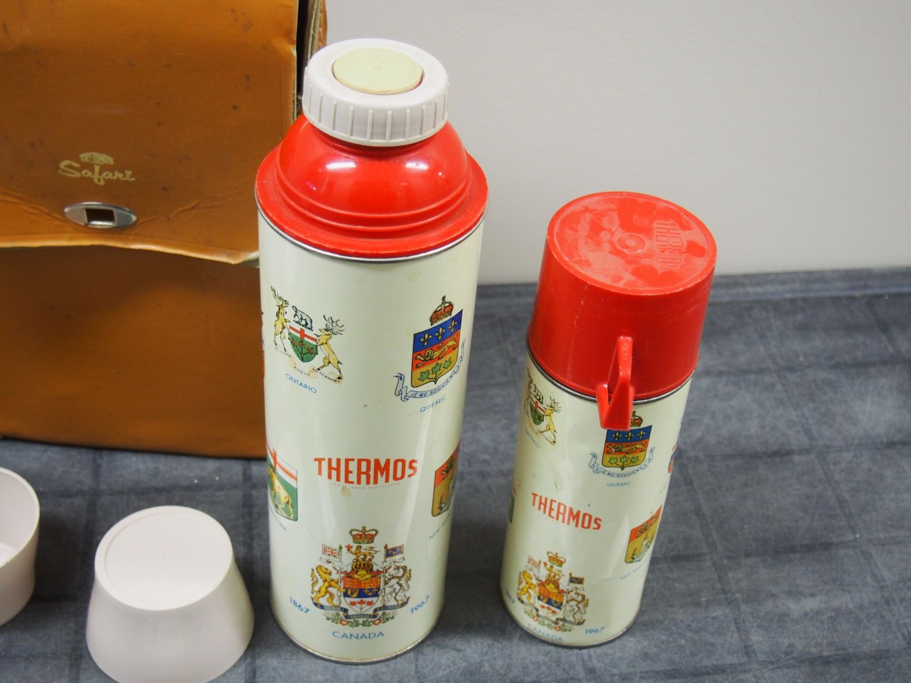(2) VINTAGE CENTENNIAL THERMOS PLUS THERMOS CASE
