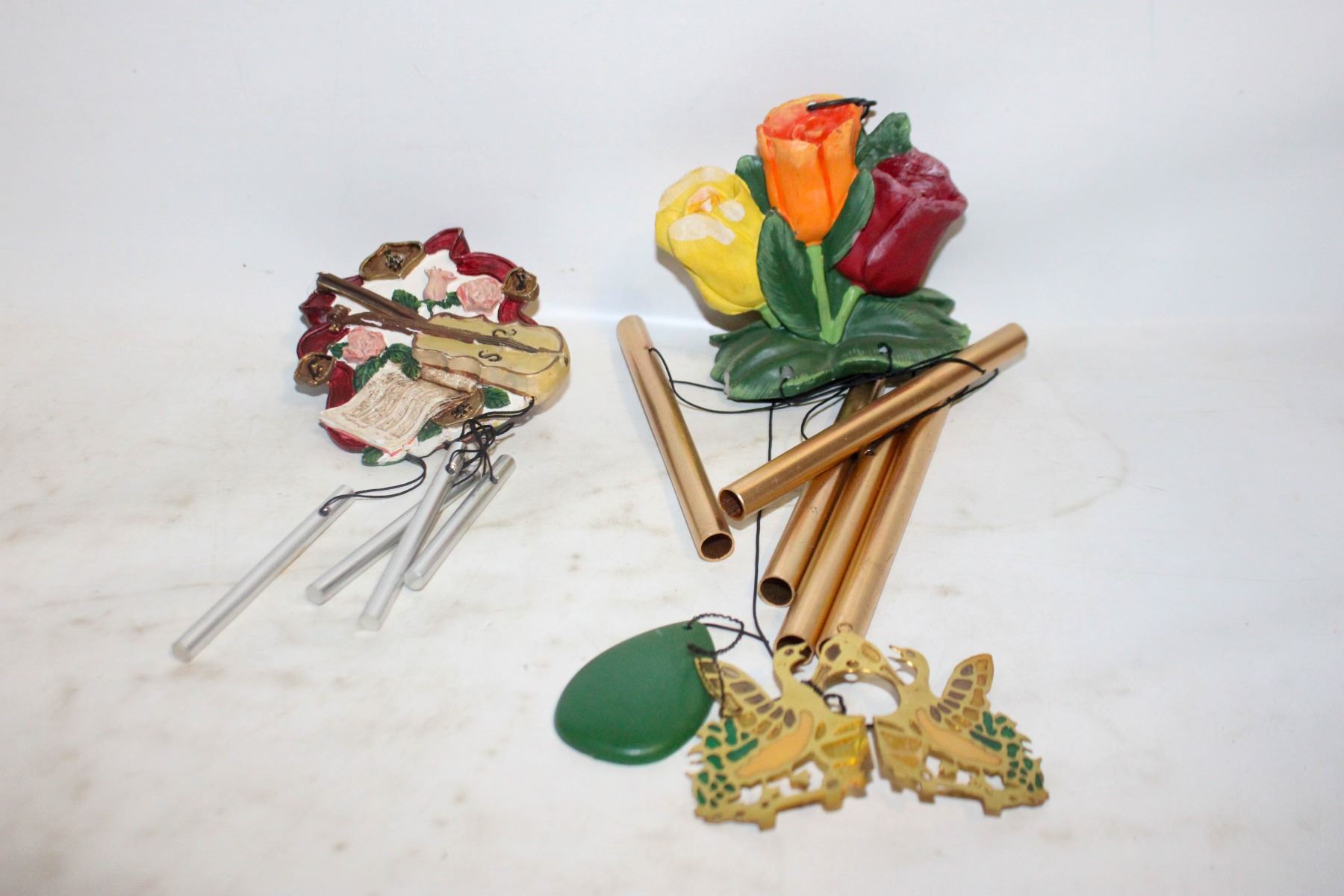 2 VINTAGE CERAMIC/BRASS WIND CHIMES