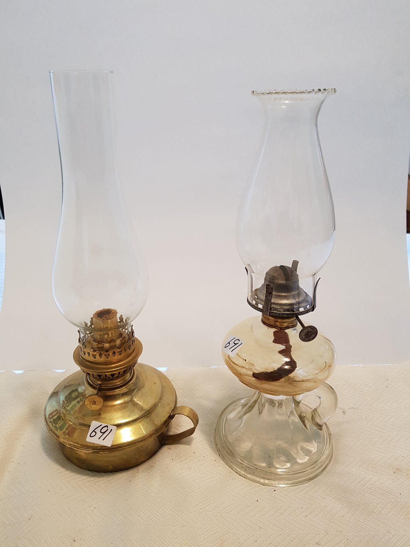 2 VINTAGE COAL OIL FINGER LAMPS