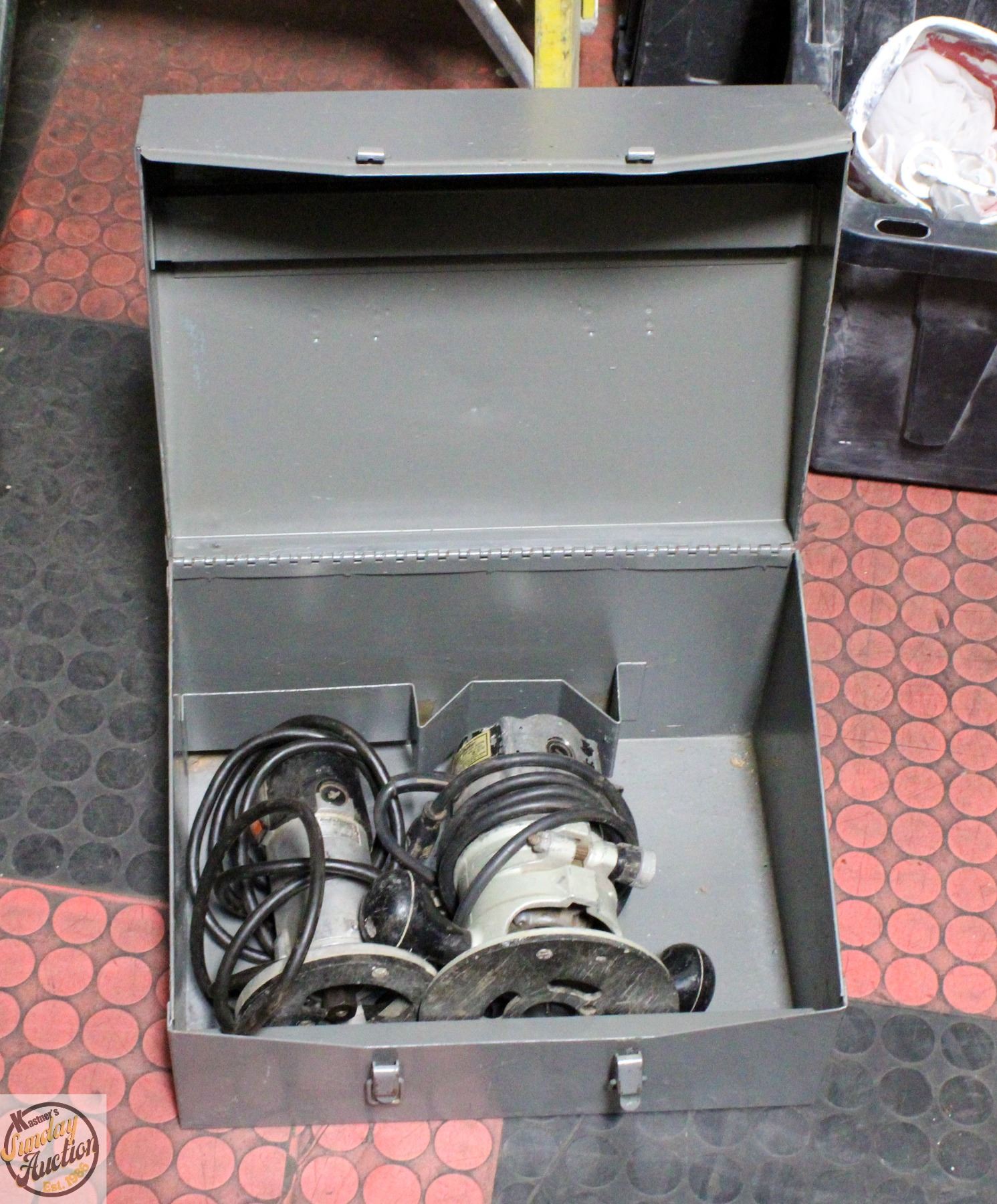 2 VINTAGE CORDED ROUTERS IN METAL CASE