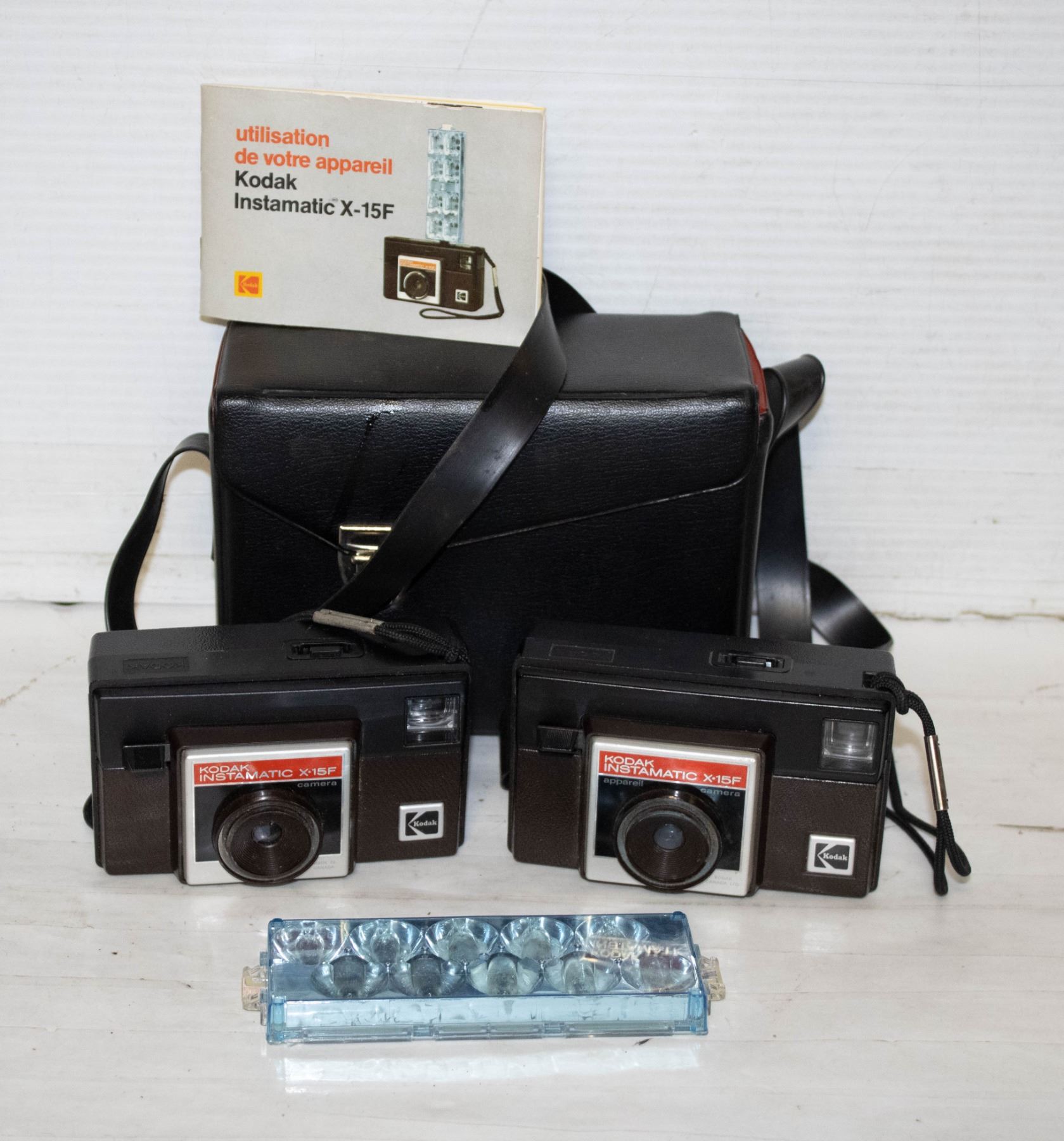 2 VINTAGE FLIP FLASH CAMERAS, CASE, 6 FLASHES