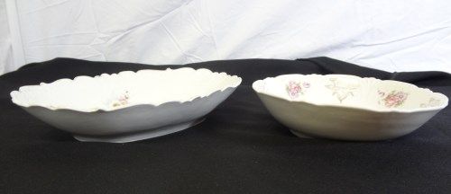 1 8 1/4" BOWL AND 1 11 1/2"x7 1/2" BOWL. BOTH ARE DIFFERENT. NO MARKINGS, FAIR CONDITION.