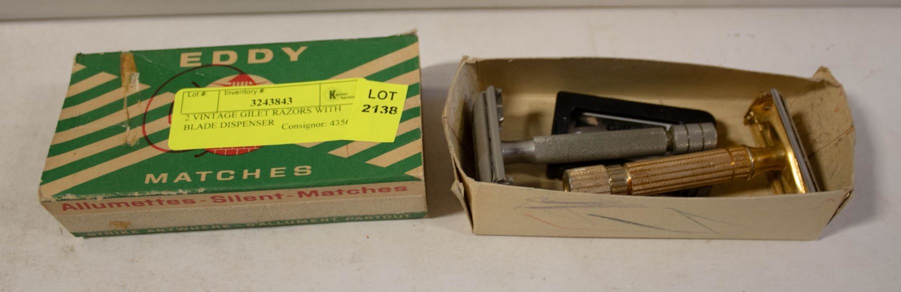 2 VINTAGE GILET RAZORS WITH BLADE DISPENSER
