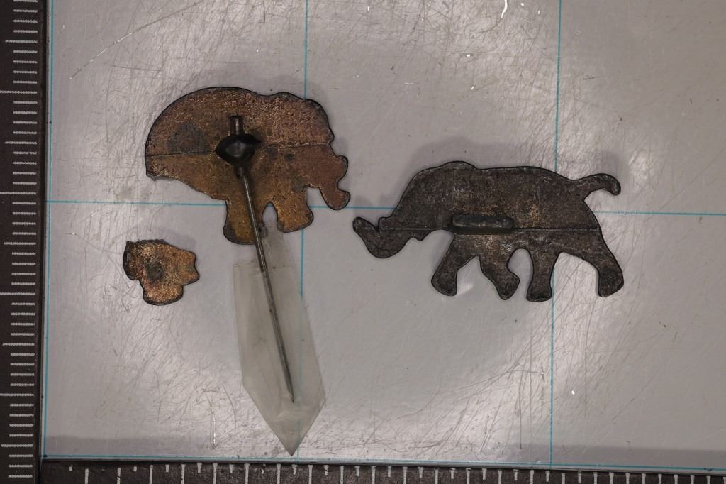 1'' WIDE, ONE IS MISSING THE PIN AND THE OTHER HAS THE LEG BROKE BUT HAS THE PIECE WITH IT