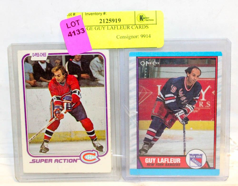 2 VINTAGE GUY LAFLEUR CARDS
