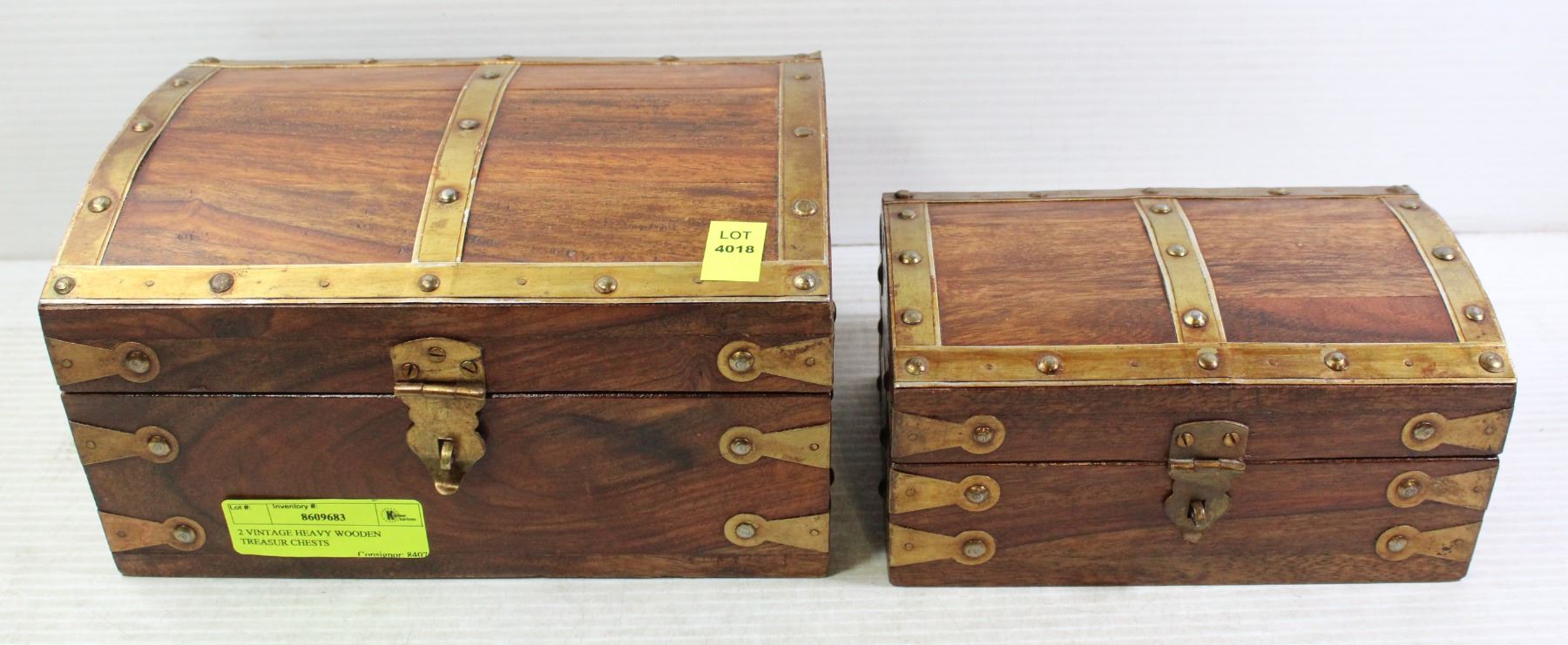 2 VINTAGE HEAVY WOODEN TREASUR CHESTS