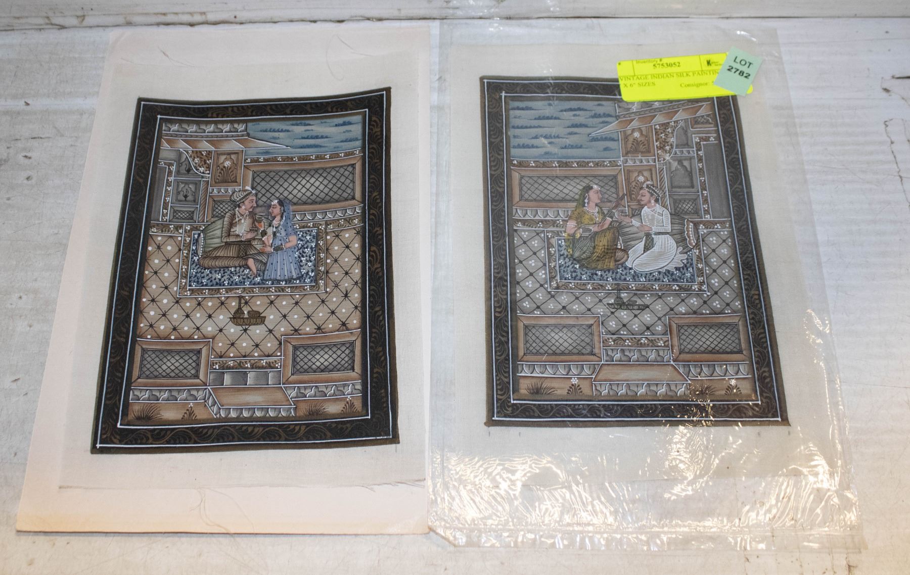 2 VINTAGE INDIAN SILK PAINTINGS 9" X 6" SIZES