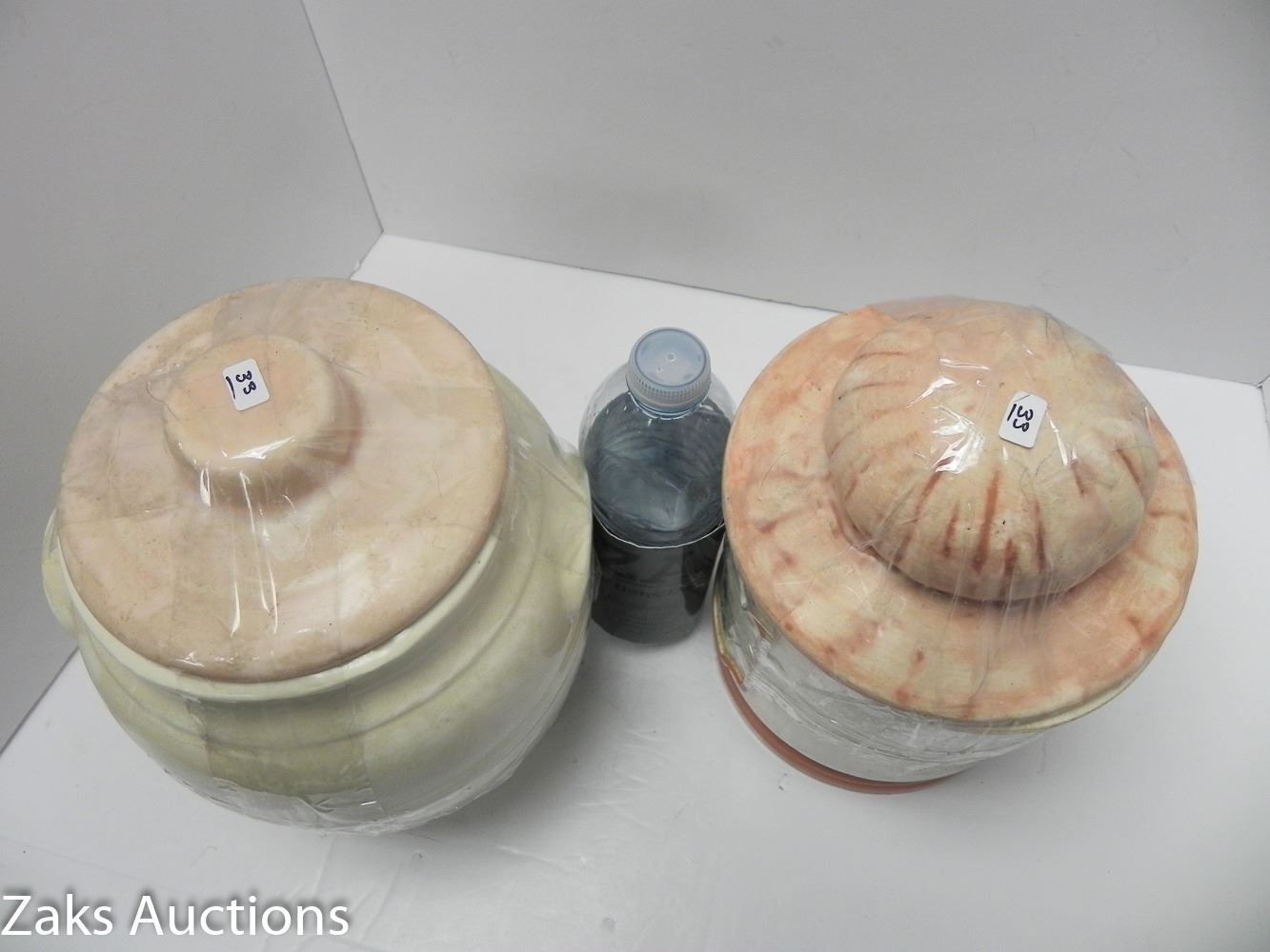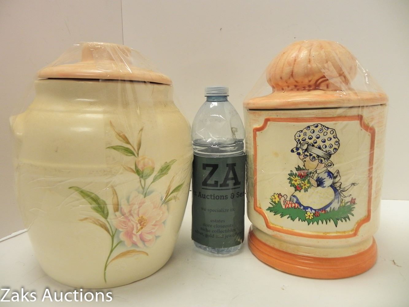2 VINTAGE LARGE CERAMIC COOK JARS - 1 IS HOLLY HOBBY STYLE AND MADE IN CANADA