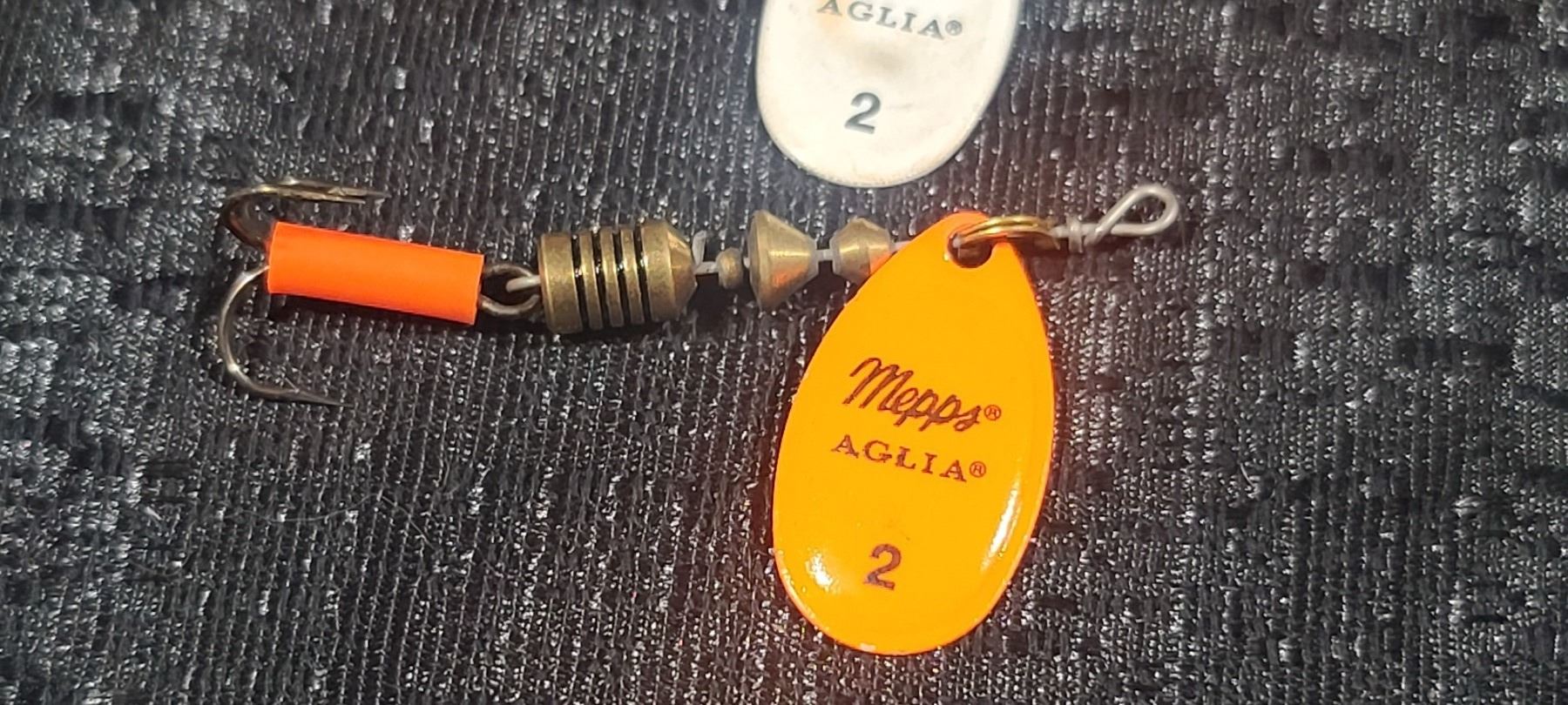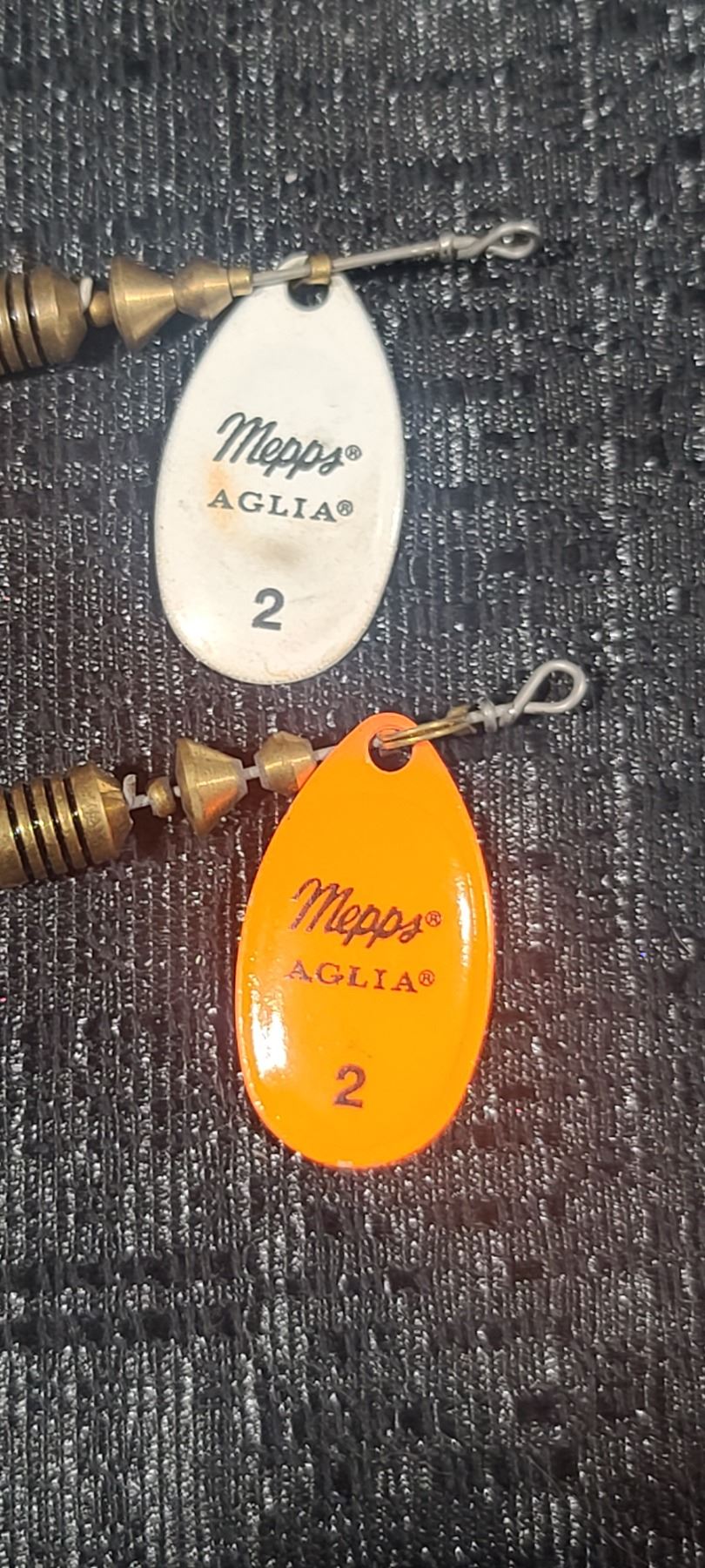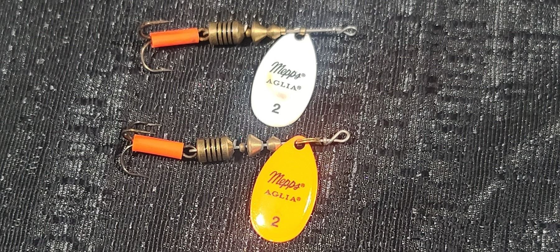 2 VINTAGE MEPPS #2 AGLIA SPINNER MADE IN FRANCE BOTH GOOD