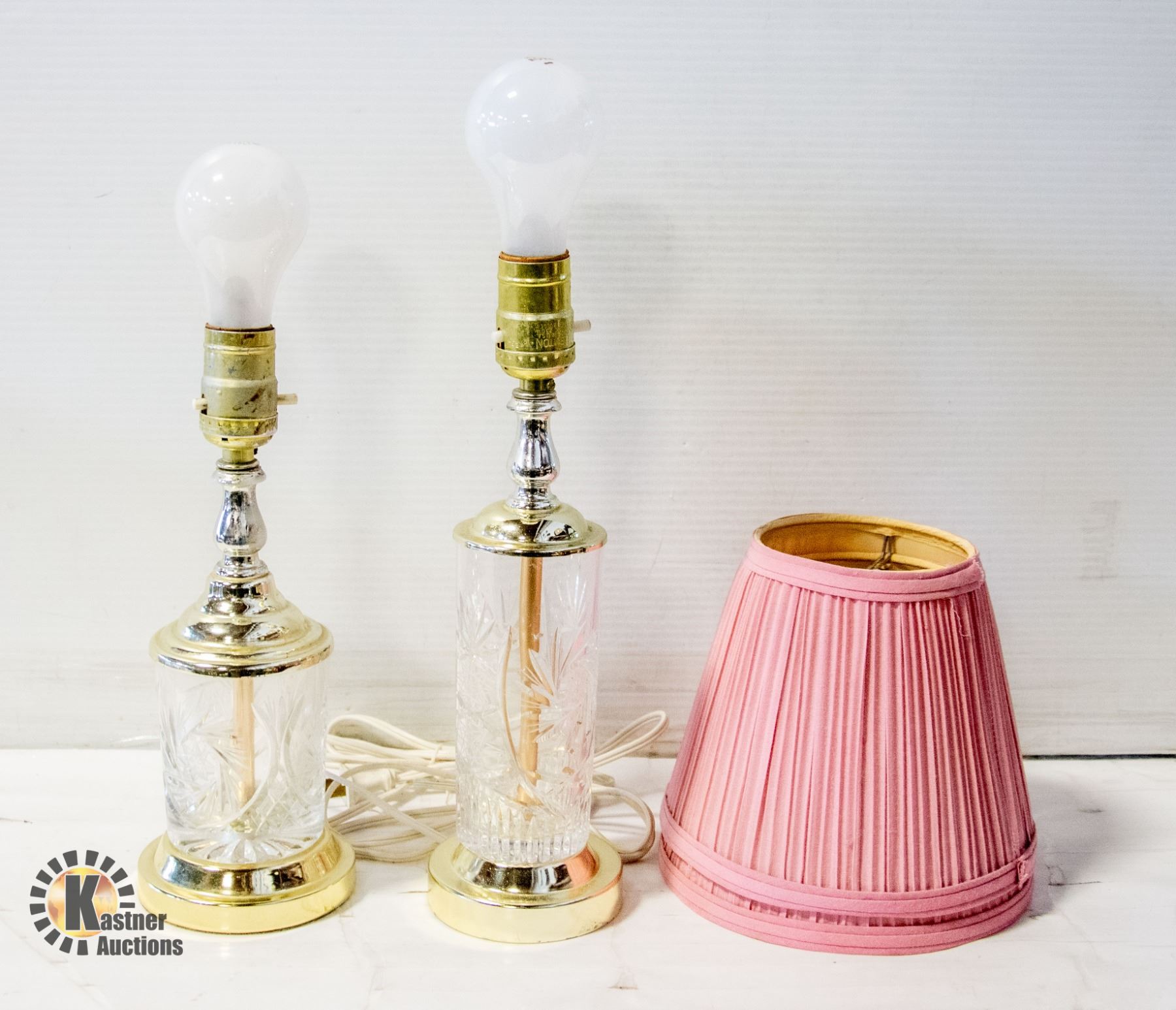 2 VINTAGE PINWHEEL CRYSTAL LAMPS 15" & 17"