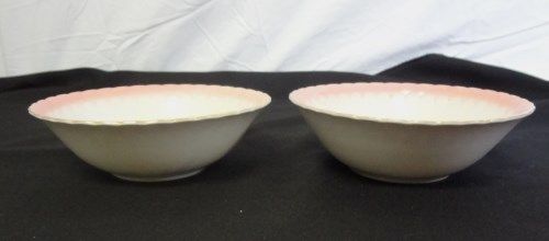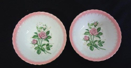 2 7" ROSE PATTERNED BOWLS WITH PINK TRIM AROUND RIM. FAIR CONDITION. UNMARKED