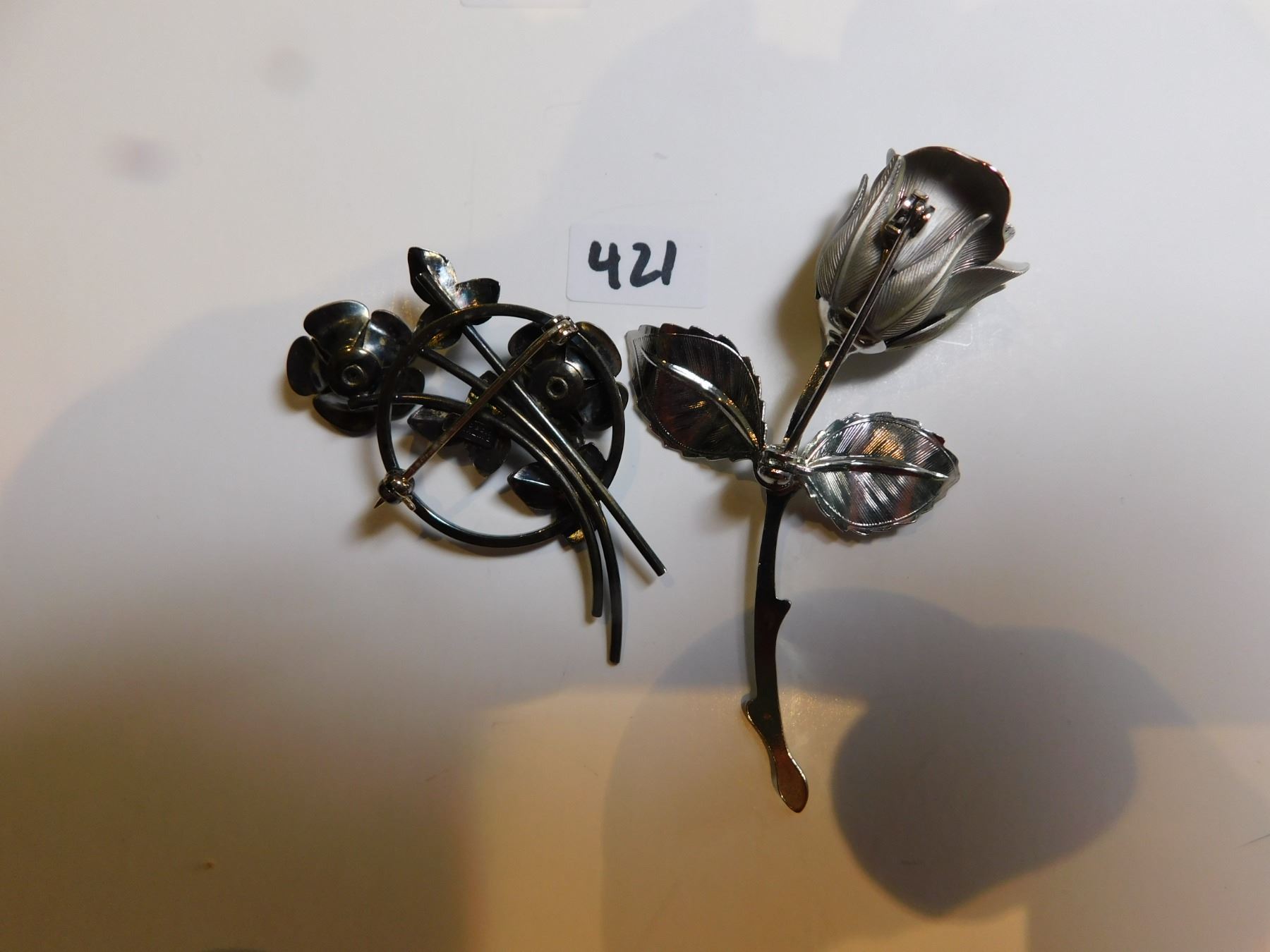 2 VINTAGE ROSE SHAPED BROACHES ONE IS STERLING