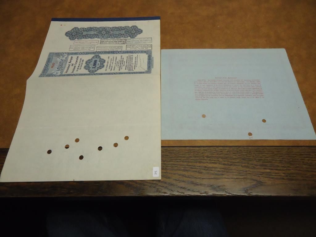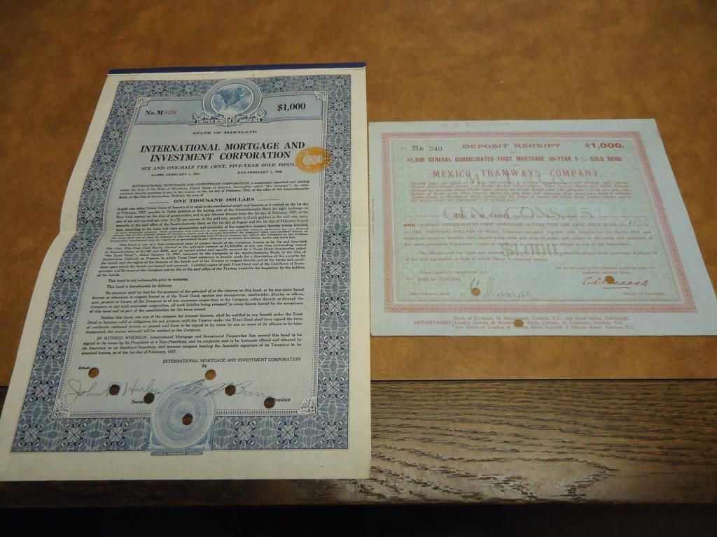 1916 MEXICO TRAMWAYS COMPANY BOND DEPOSIT RECIEPT AND 1927 INTERNATIONAL MORTGAGE AND INVESTMENT INC. BOND