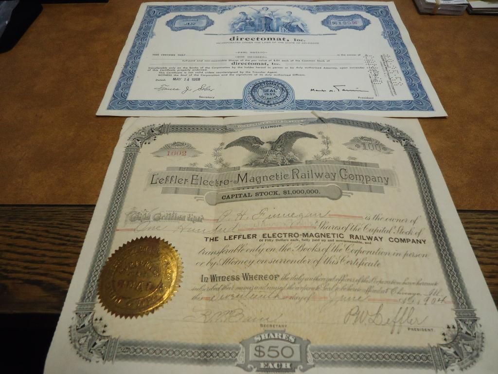 1904 LEFFLER ELECTRO-MAGNETIC RAILWAY COMPANY AND 1958 DIRECTOMAT INC