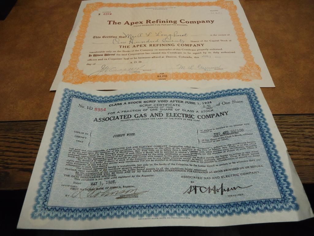 1928 ASSOC. GAS AND ELECTRIC COMPANY AND 1920 APEX REFINING COMPANY