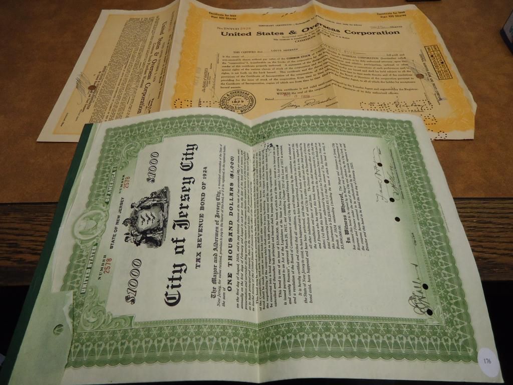 1924 JERSEY CITY TAX REVENUE BOND AND 1929 UNITED STATES AND OVERSEES CORPORATION