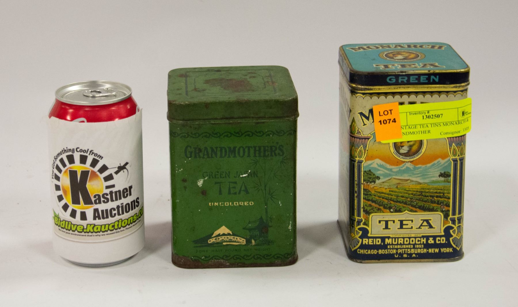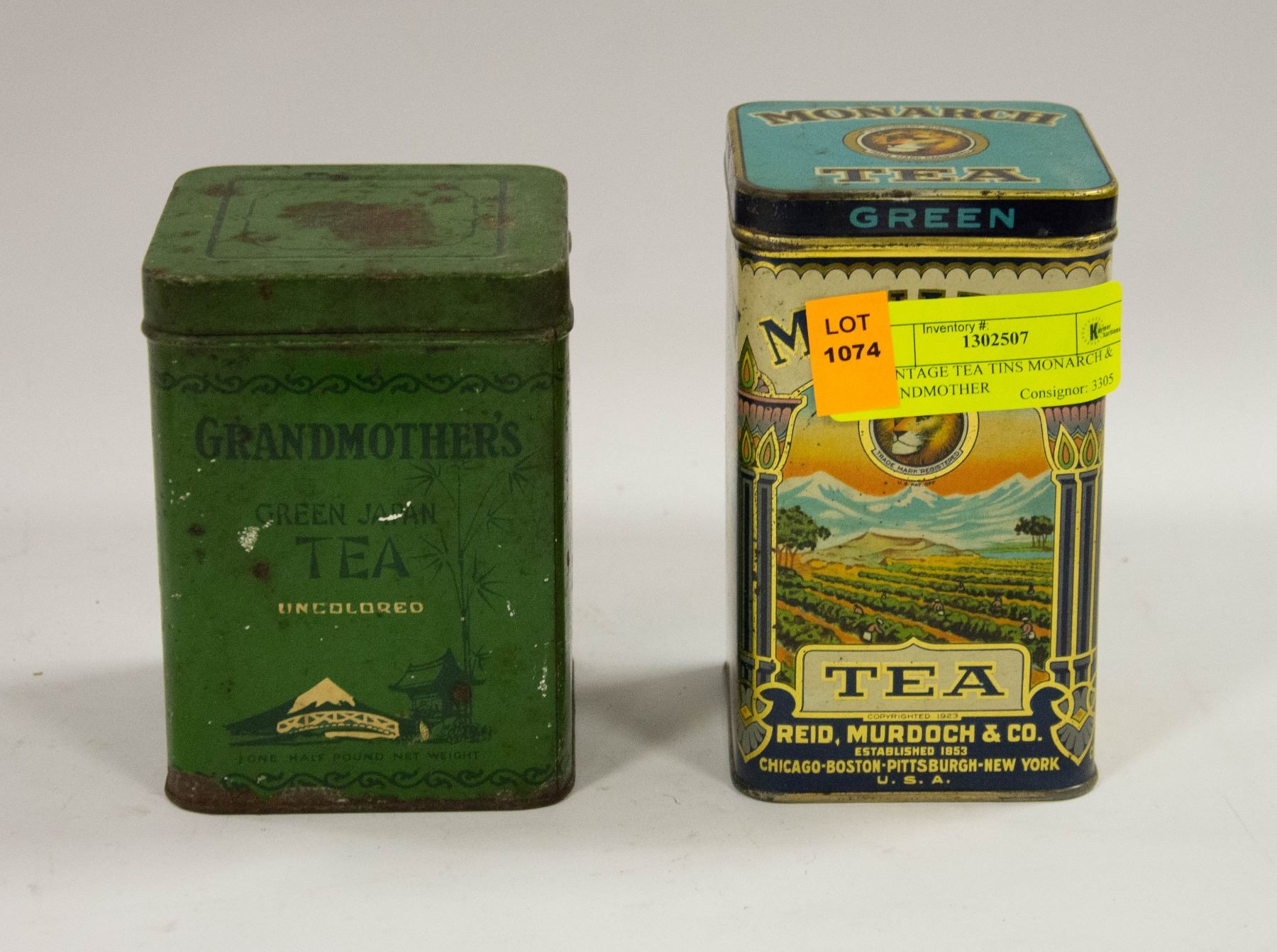 2 VINTAGE TEA TINS MONARCH & GRANDMOTHER