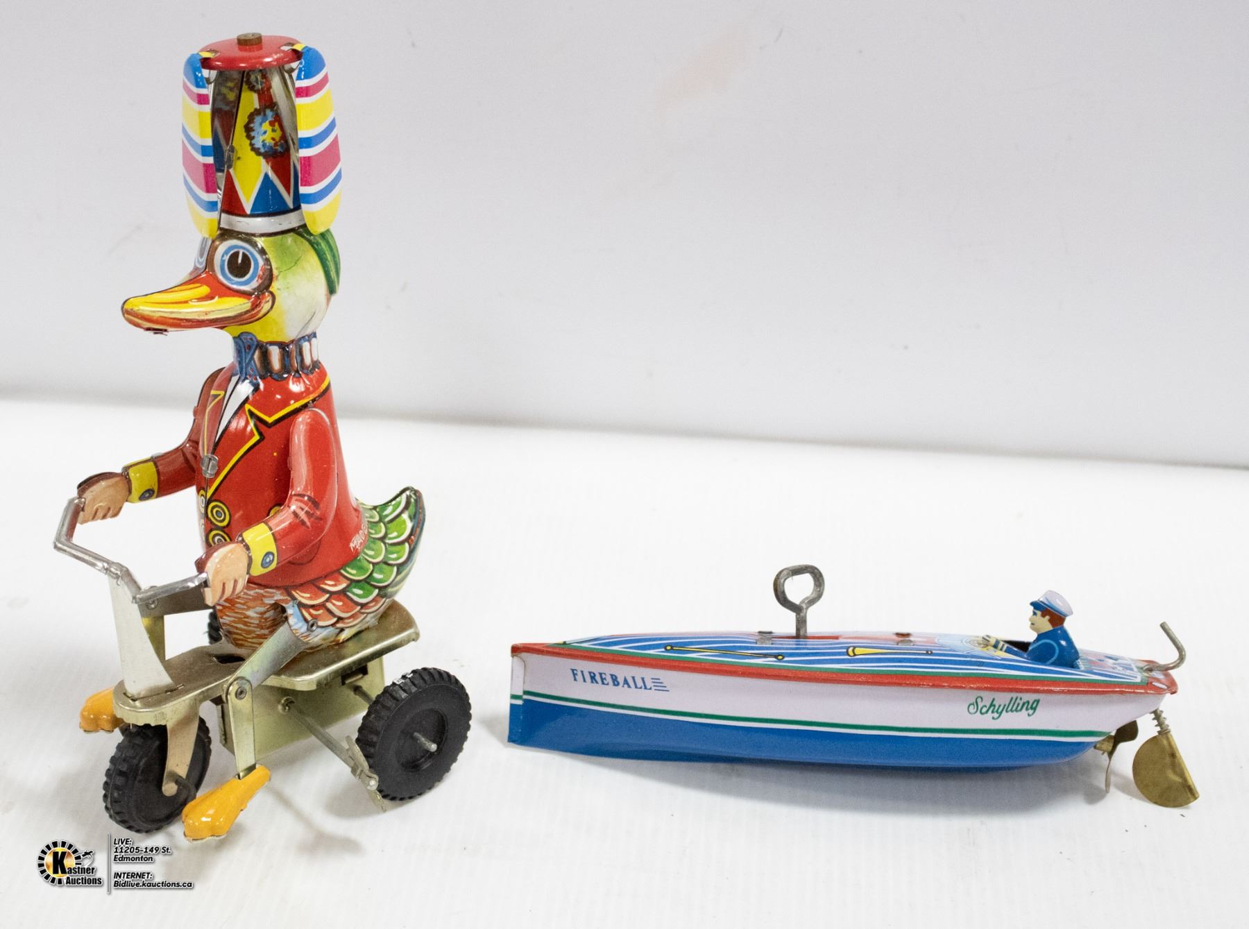 2 VINTAGE TIN LITHO WIND UP TOYS WITH KEYS