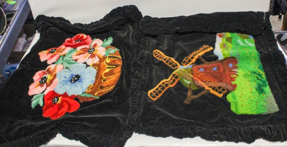2 VINTAGE VELOUR WITH DESIGN WINDMILL & FLOWERS