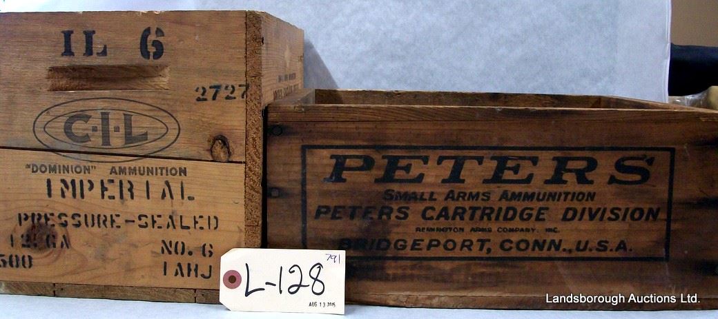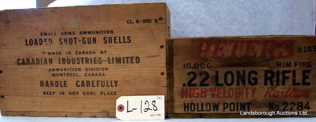 1 PETERS .22LONG RIFLE HIGH VELOCITY RUSTLESS HOLDS 10,000 RIMFIRE . THE OTHER IS A C.I.L.IMPERIAL PRESSURE-SEALED 12GA NO. 6 HOLDS 500 ROUNDS.