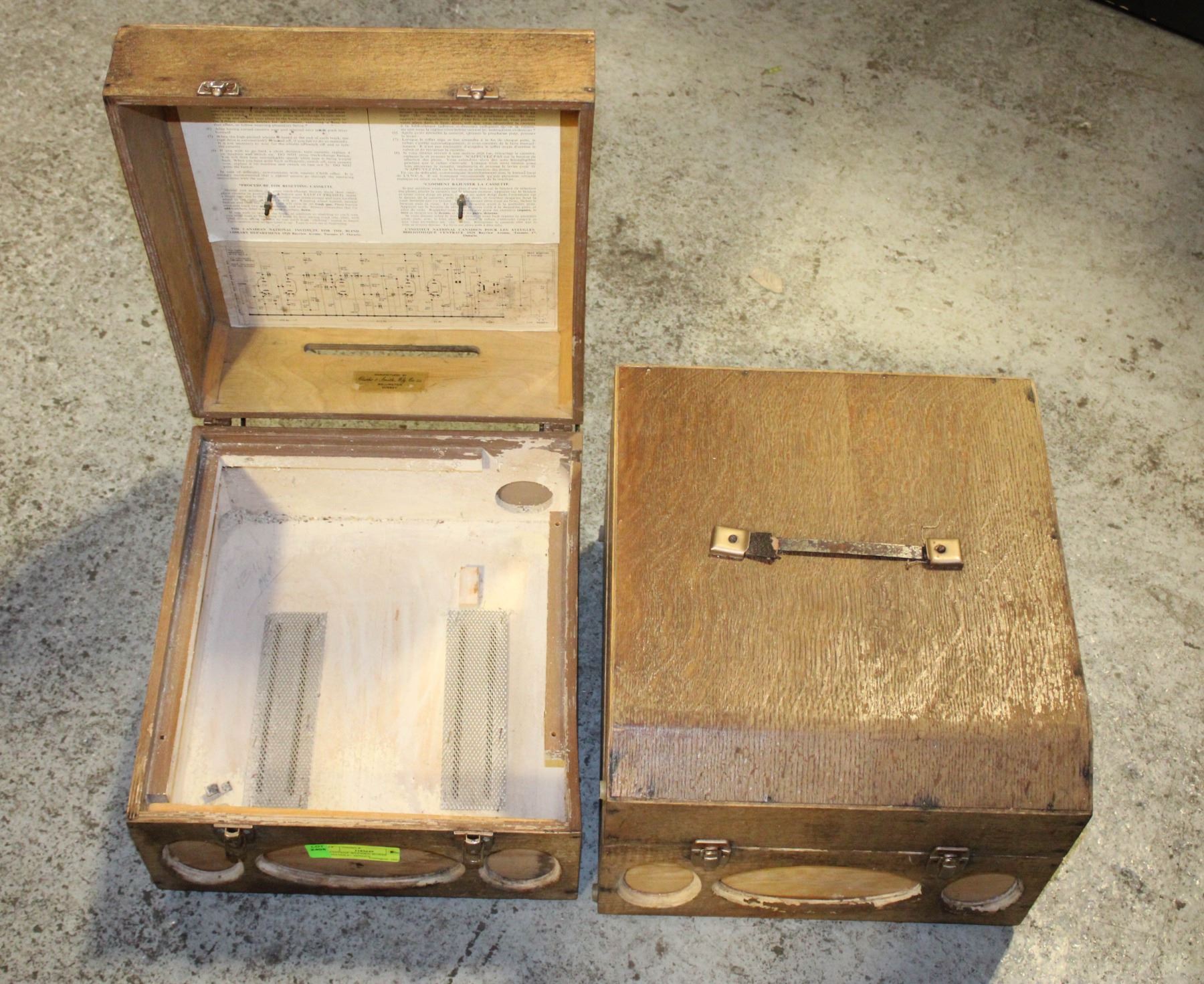 2 VINTAGE WOODEN BOXES W/HANDLE+ HINGES