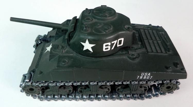 2 VINTAGE WWII DIECAST TANKS BY SOLIDO-SHERMAN & M47 GENERAL PATTON---BOTH ARE IN GREAT SHAPE, APPROX 5" LONG AND 2 1/2" WIDE--TURRETS, BARRELS AND METAL TRACKS MOVE--ONE IS MARKED "CHAR BLIND GENERAL PATTON M-47 SOLIDO, MADE IN FRANCE" THE OTHER IS MARKED "SHERMAN M4 A3 No 231--1972-SOLIDO MADE IN FRANCE