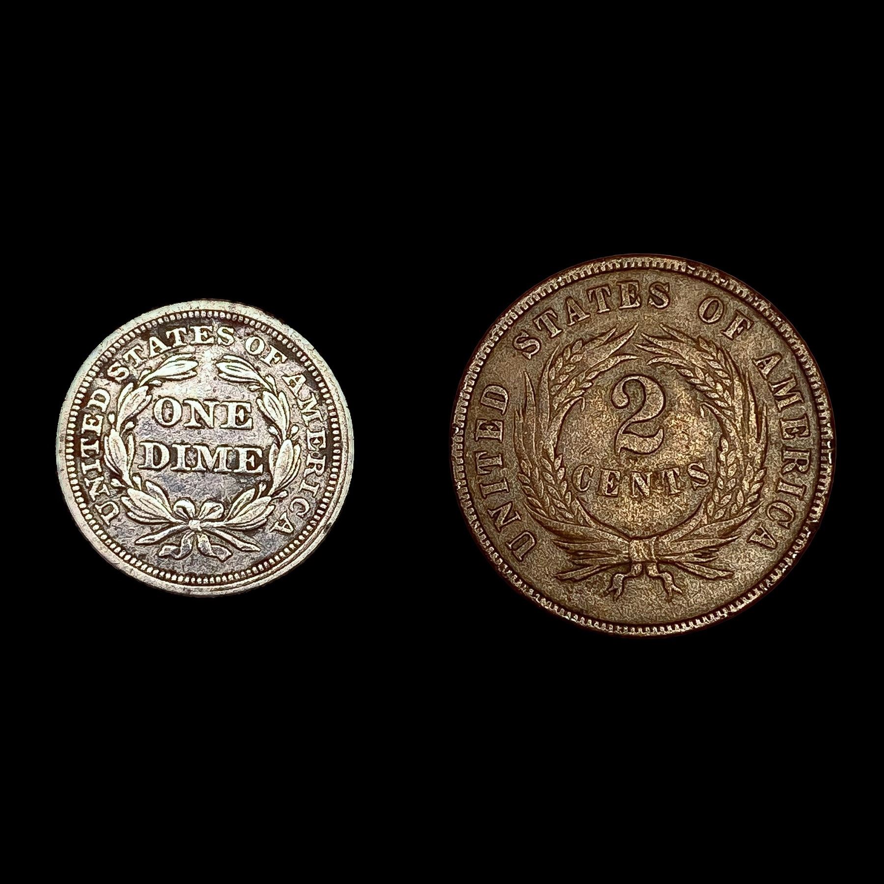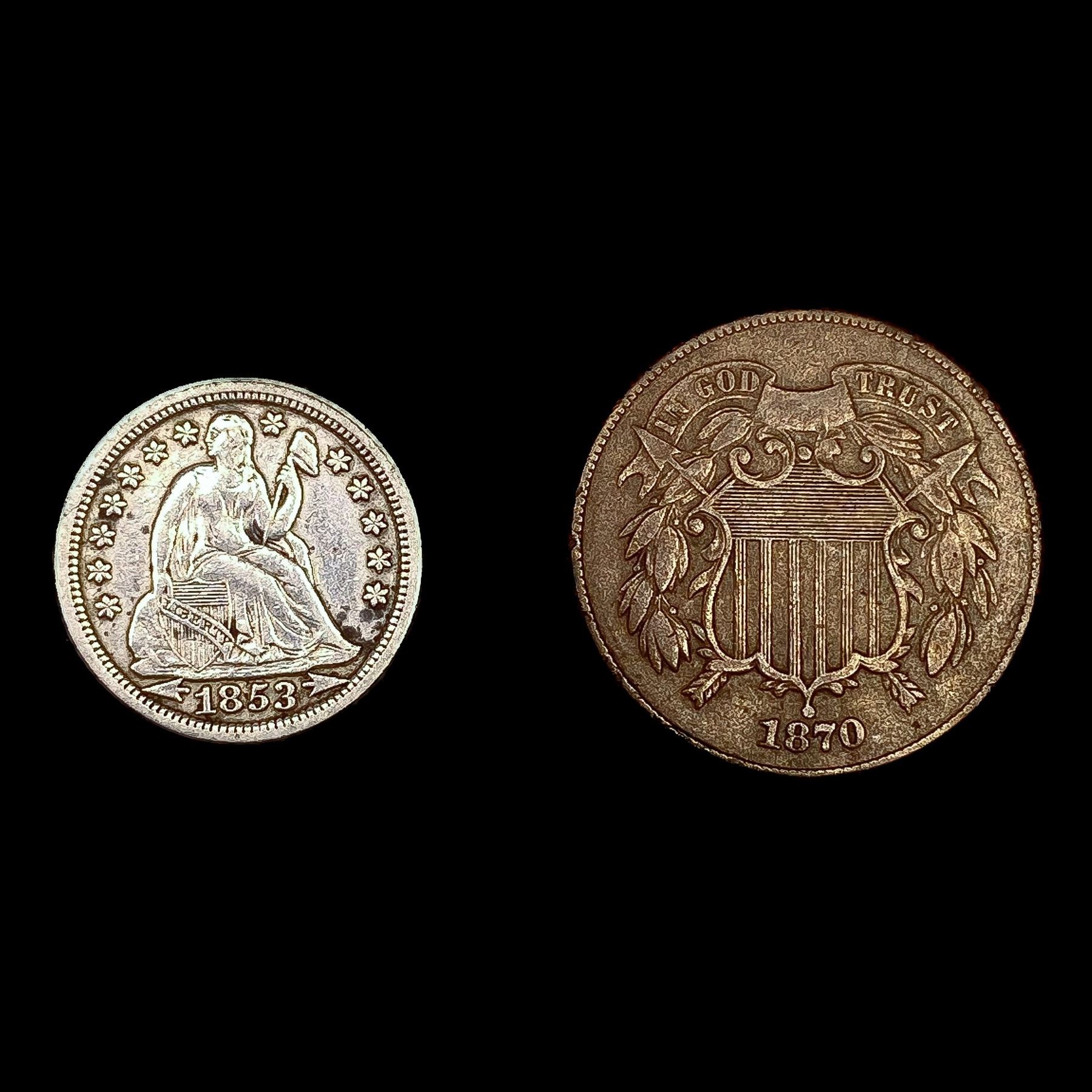 [2] Varied US Coinage (1853, 1870) CLOSELY UNCIRCU