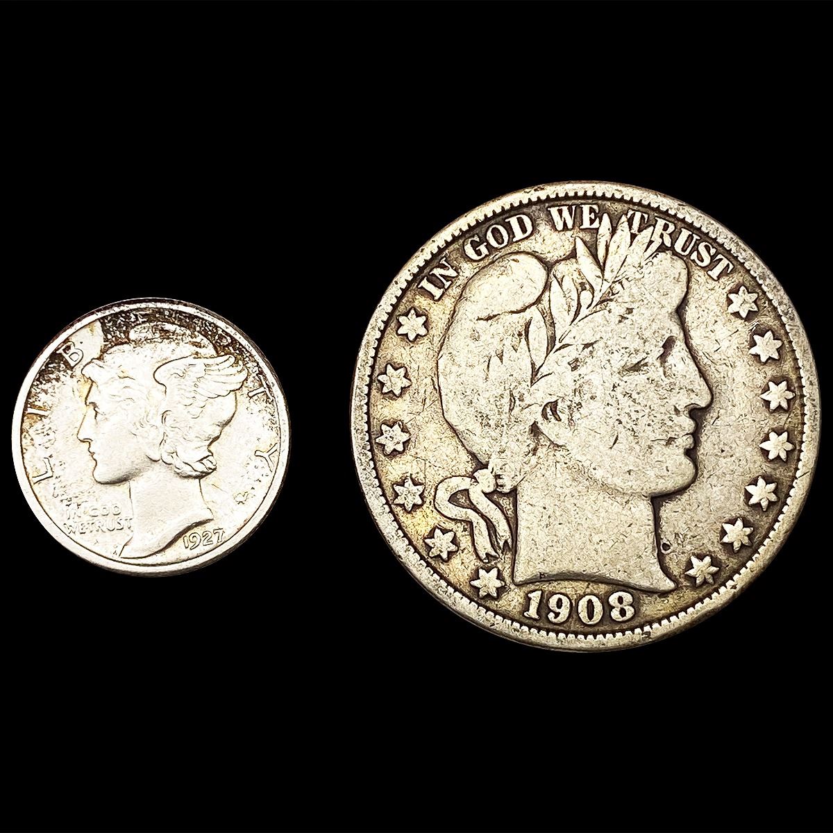 (2) Varied US SILV Coinage (1908-O, 1927) UNCIRCU