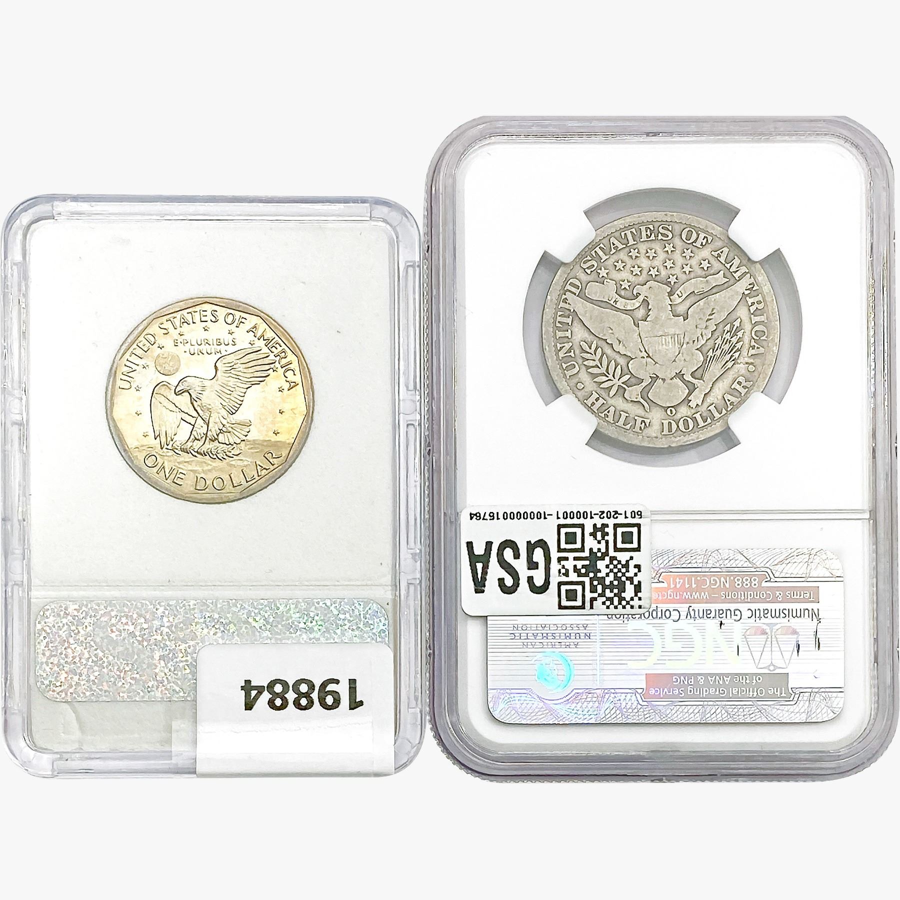 e. Coins sold referencing a third-party grading service are sold “AS IS” without any express or implied warranty, except for a guarantee by GSA that they are genuine. Removal or alteration of the holder, voids all of Bidder’s claims concerning that Product. Certain warranties may be available from the grading services and Bidders are referred to them for further details: Numismatic Guaranty Corporation (NGC), PO Box 4776, Sarasota, FL 34230, www.ngccoin.com/services/writtenguarantee.asp; Professional Coin Grading Services (PCGS), PO Box 9458, Newport Beach, CA 92658, www.pcgs.com/guarantee.html; ANACS, 6555 S. Kenton St., Ste. 303, Englewood, CO 80111; and Independent Coin Grading Co. (ICG), 7901 East Bellview, Ave., Suite 50, Englewood, CO 80111.