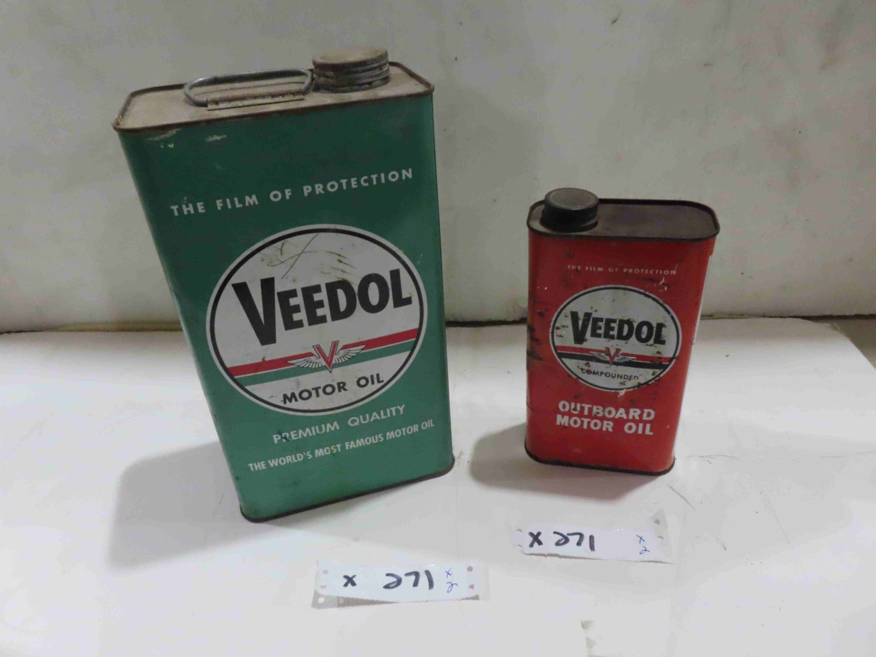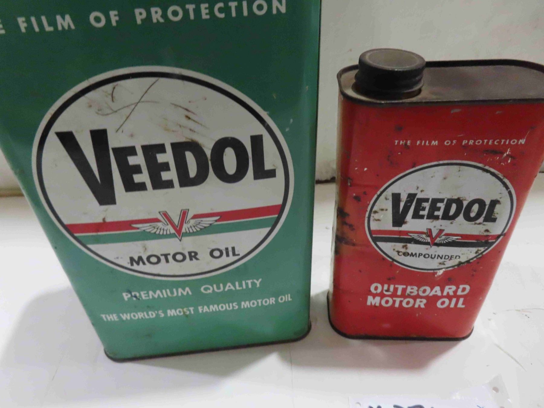 2 Veedol Oil Cans : Outboard Quartz, Motor Oil 1 Gal