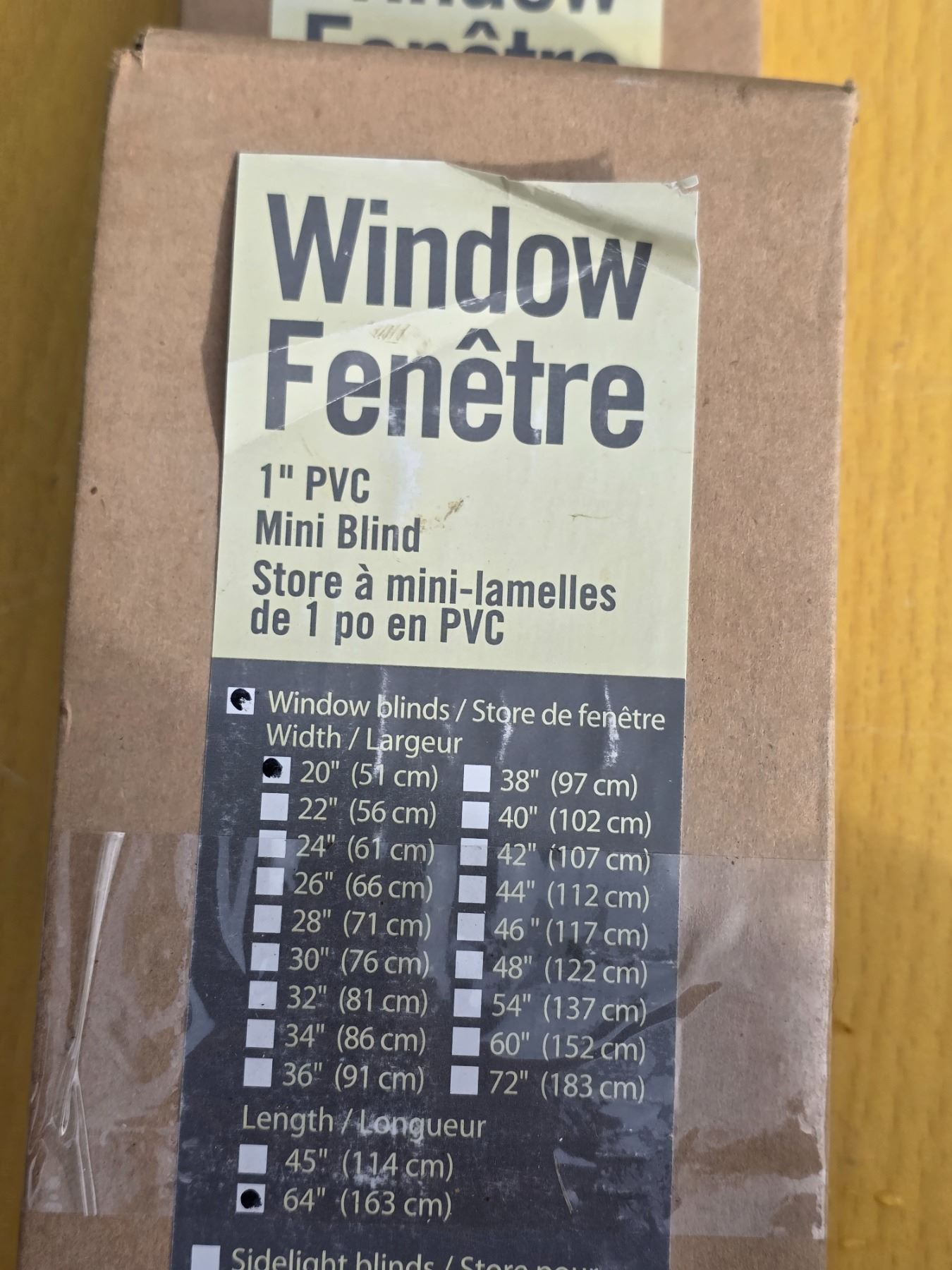 2 Venitian Mini Blinds, 1" PVC 1- 20x 64, 1 - 24x45