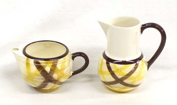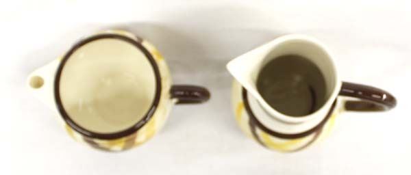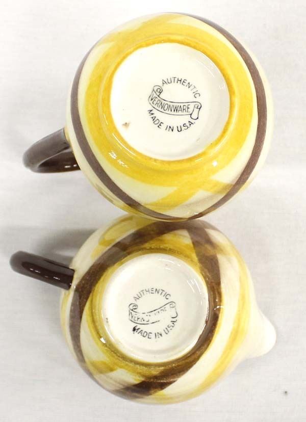 2 Vernonware Organdie Metlox Poppytrail Pitchers, includes cream pitcher and 16 oz. pitcher, largest measures 5.5''H, ca. 1950s