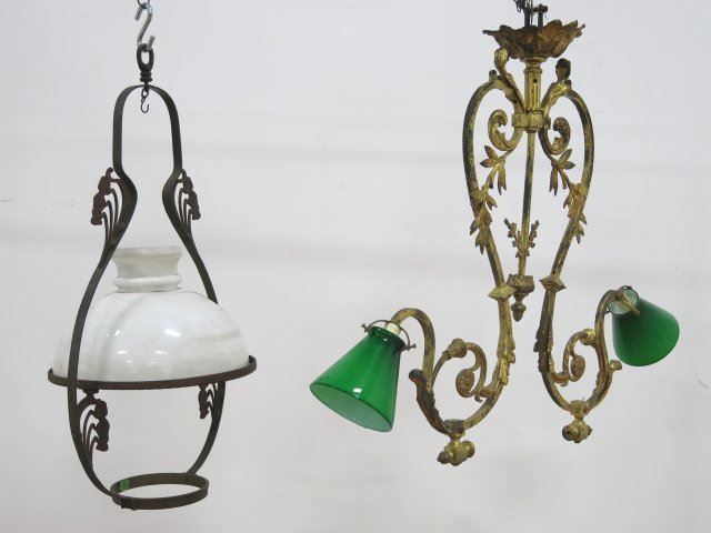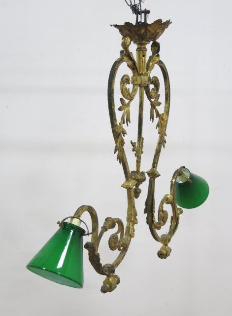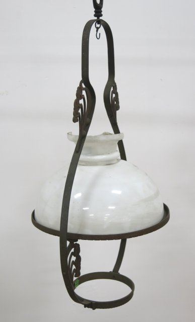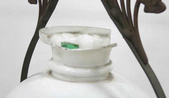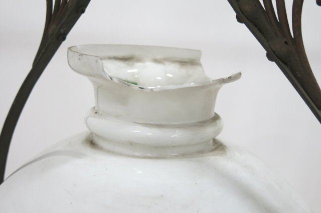 Approx. 25" H x 24" W. 1 missing shade, 1 cracked shade, missing font.