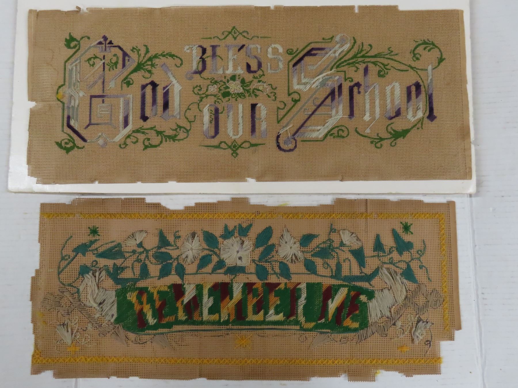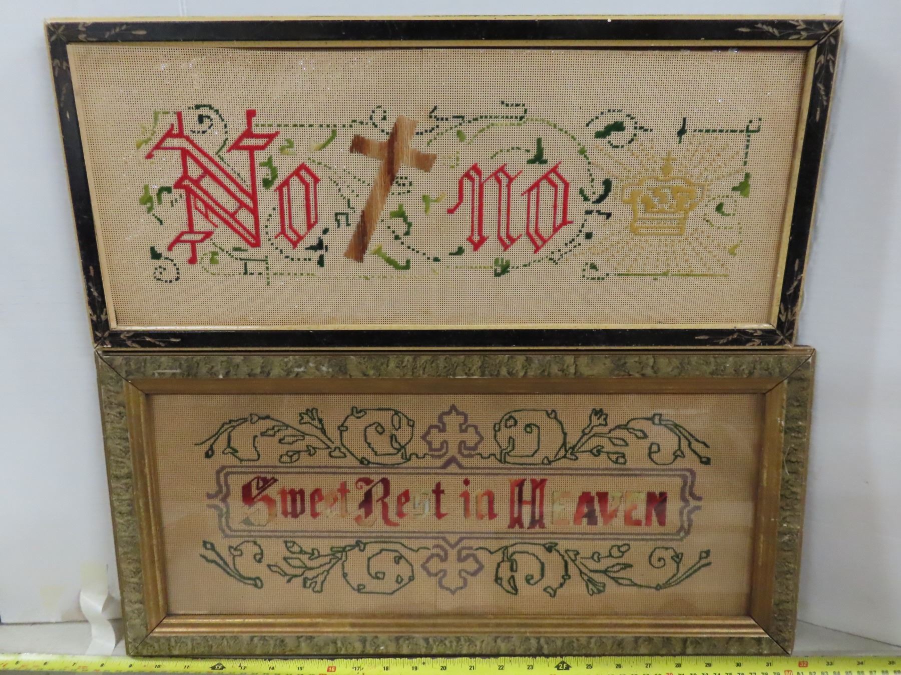 2 Victorian handmade needle point pictures + 2 frames + 2 scrapbook items
