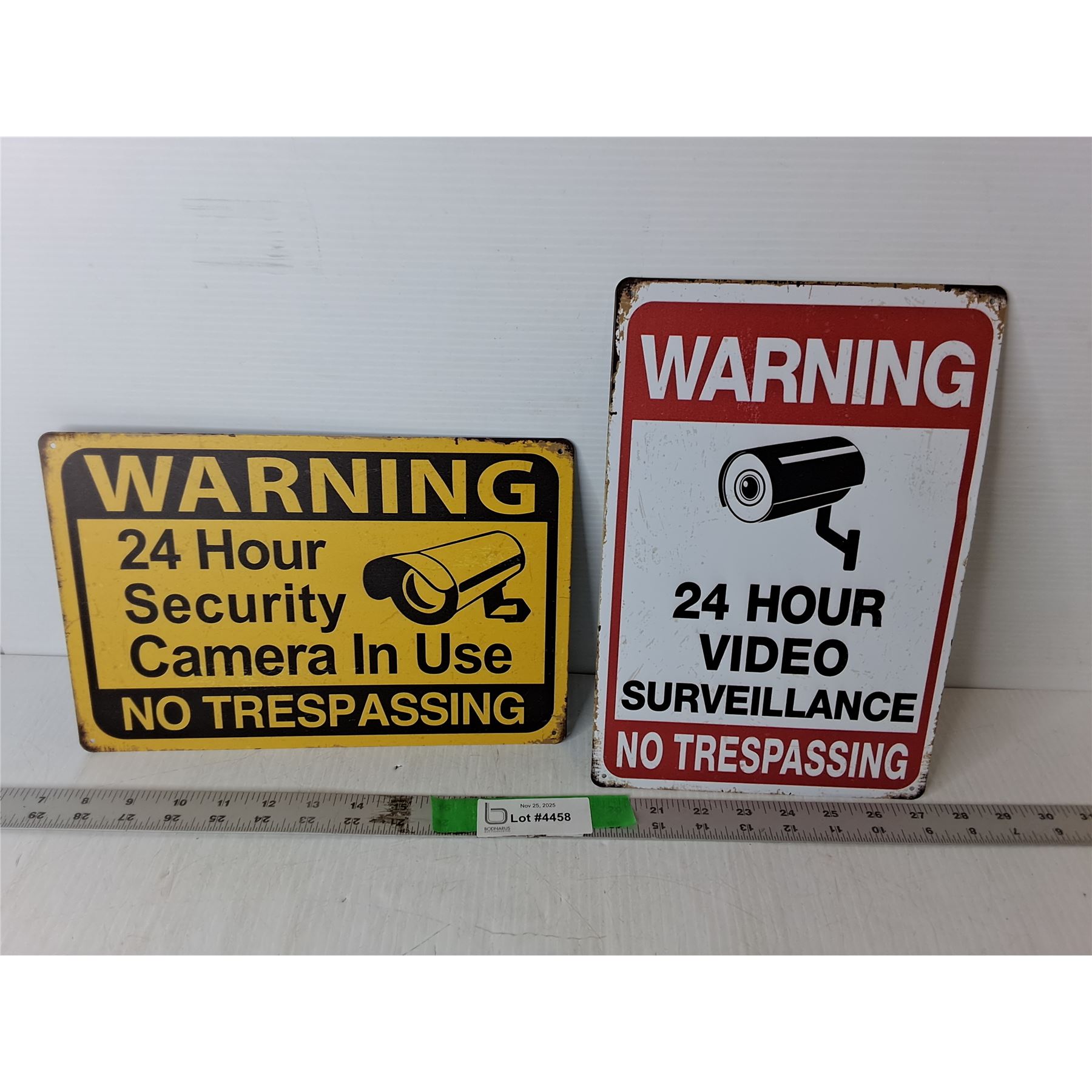 (2) Video Surveillance Metal Signs 11.75" x 8"