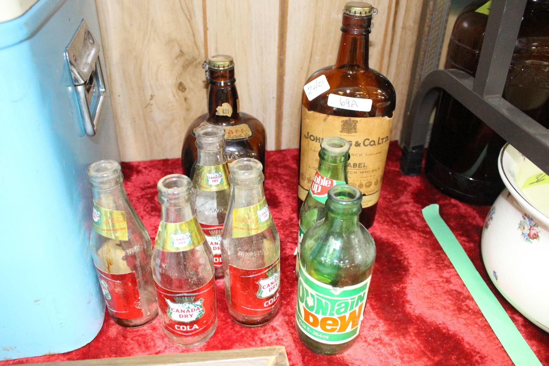 2 Viintage Whiskey Bottles & 6 Mini Pop Bottles