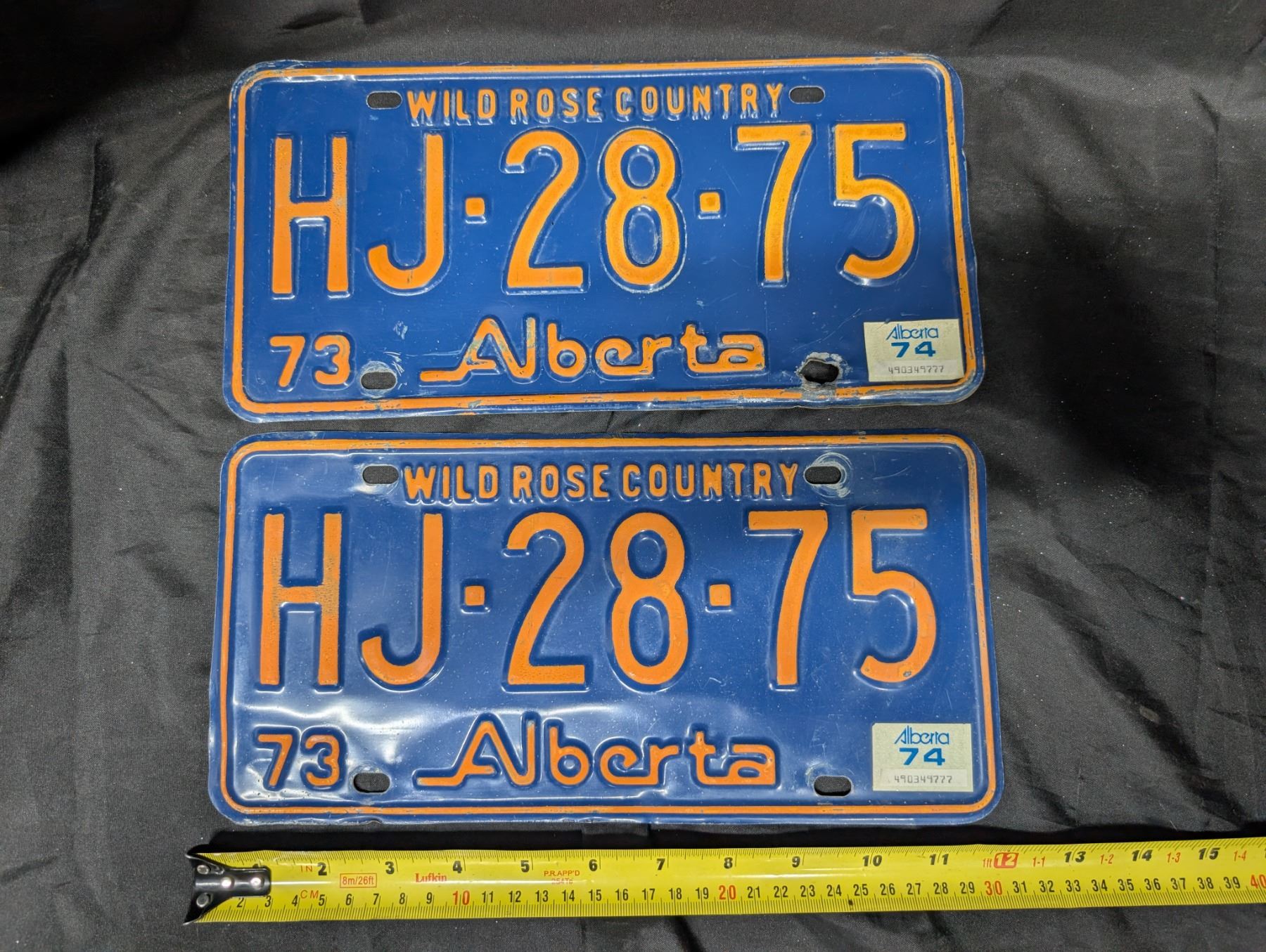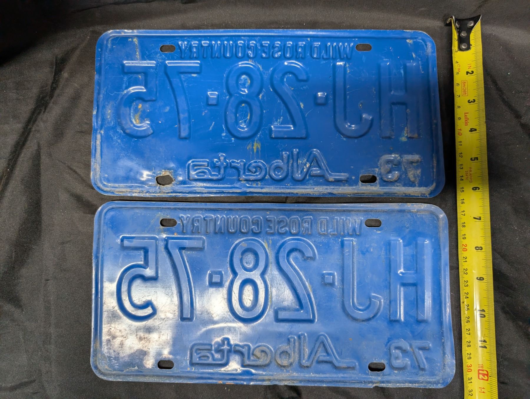 (2) Vintage 1973 Alberta Matching License Plates HJ-28-75
