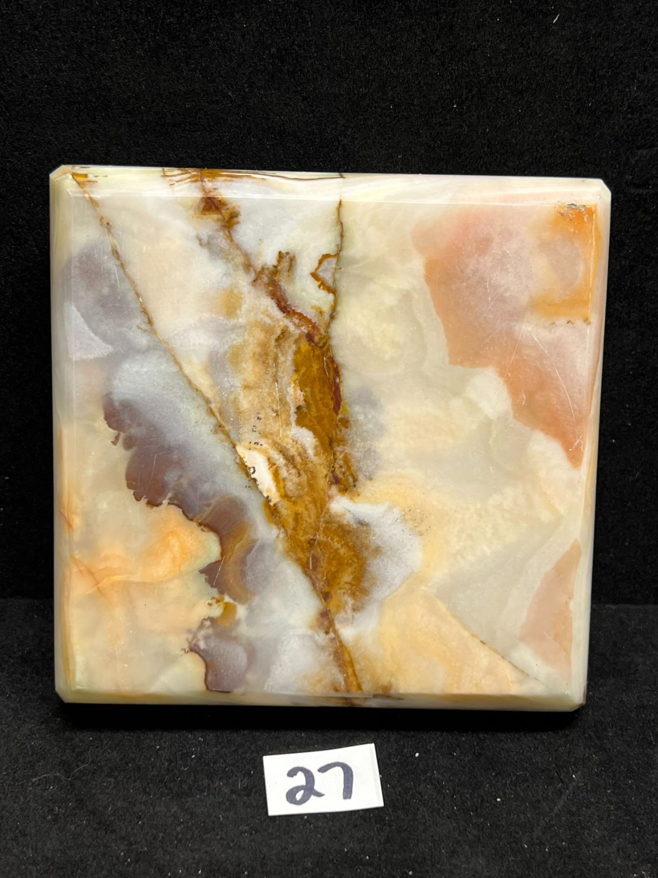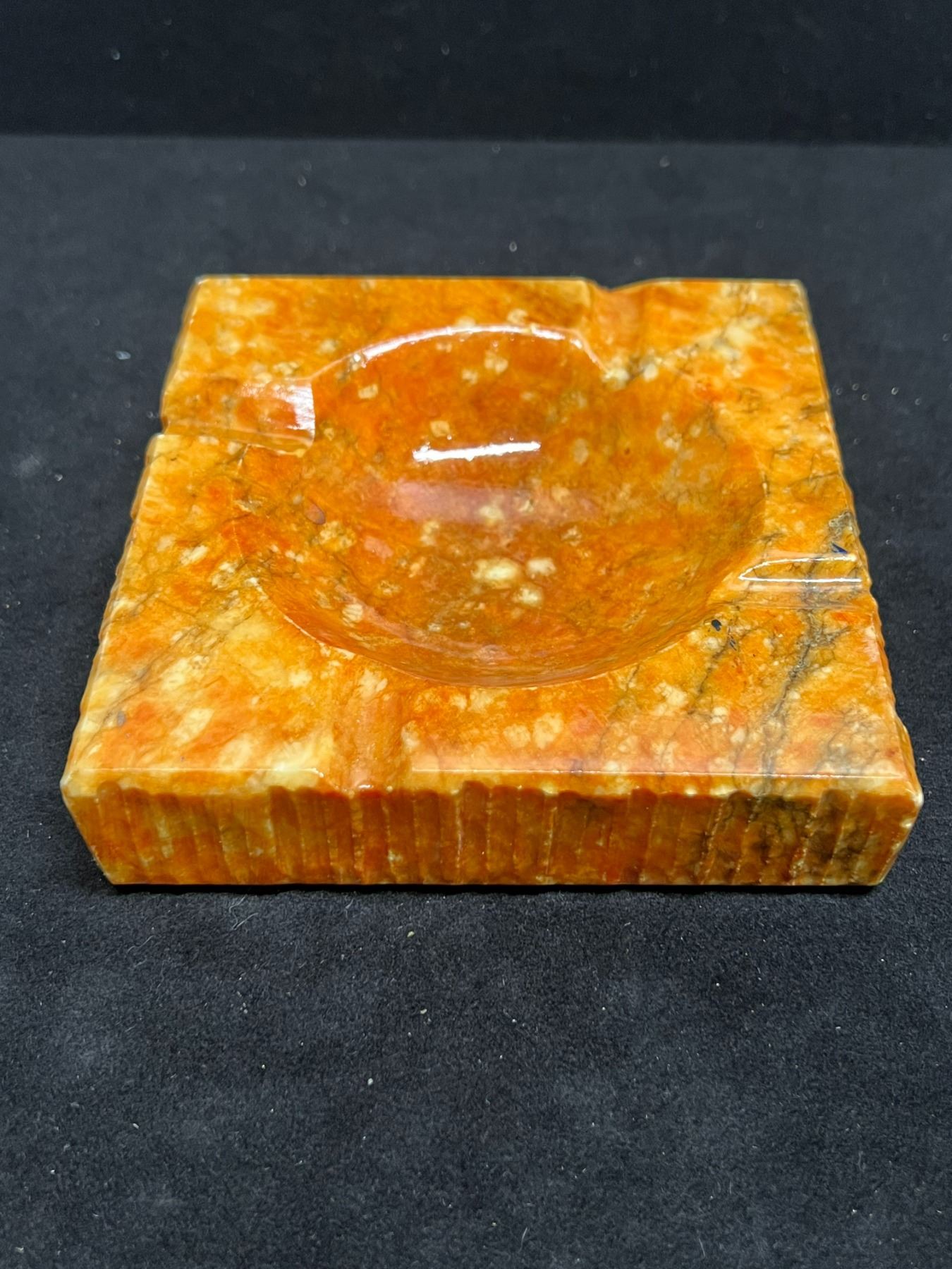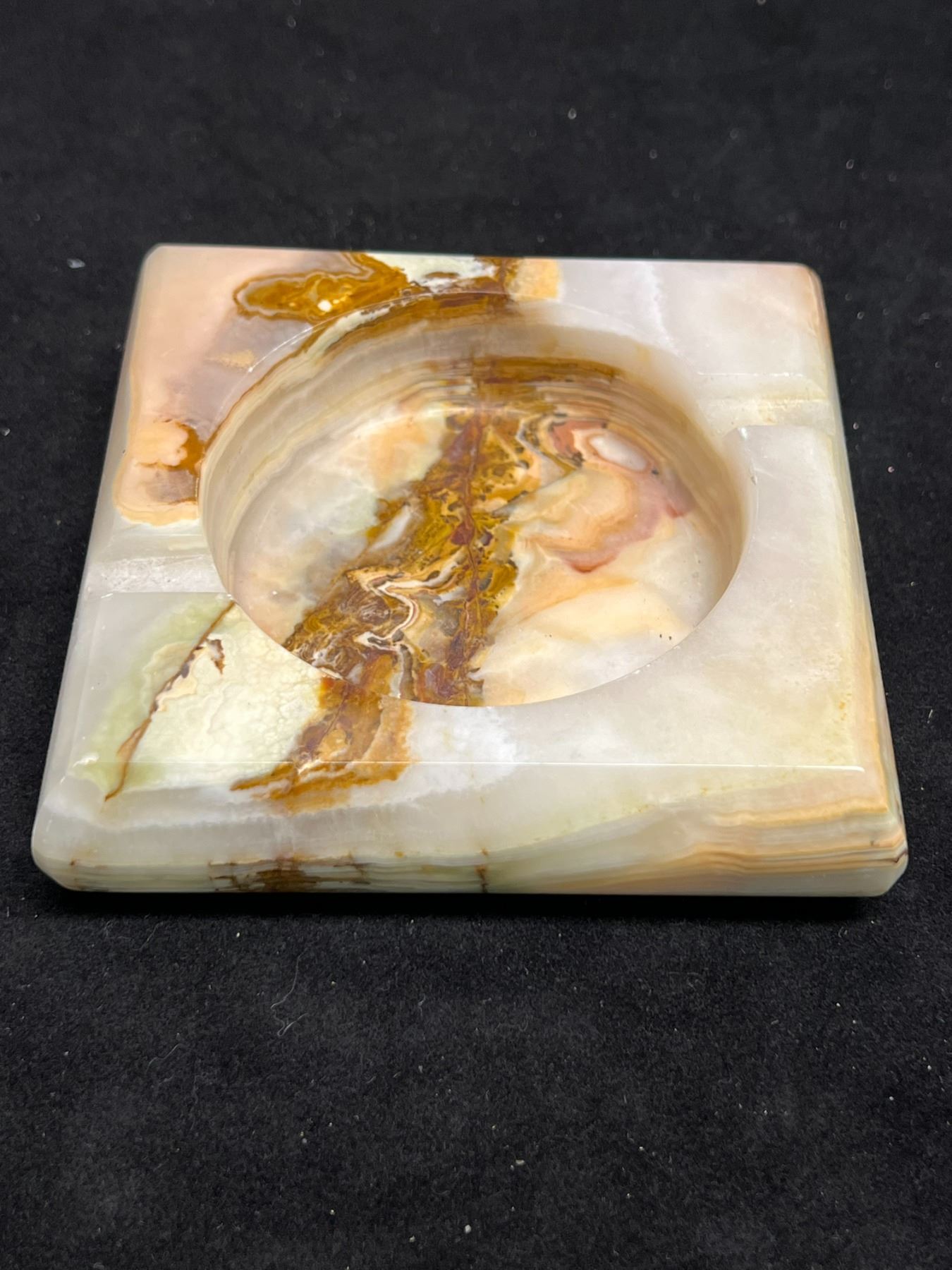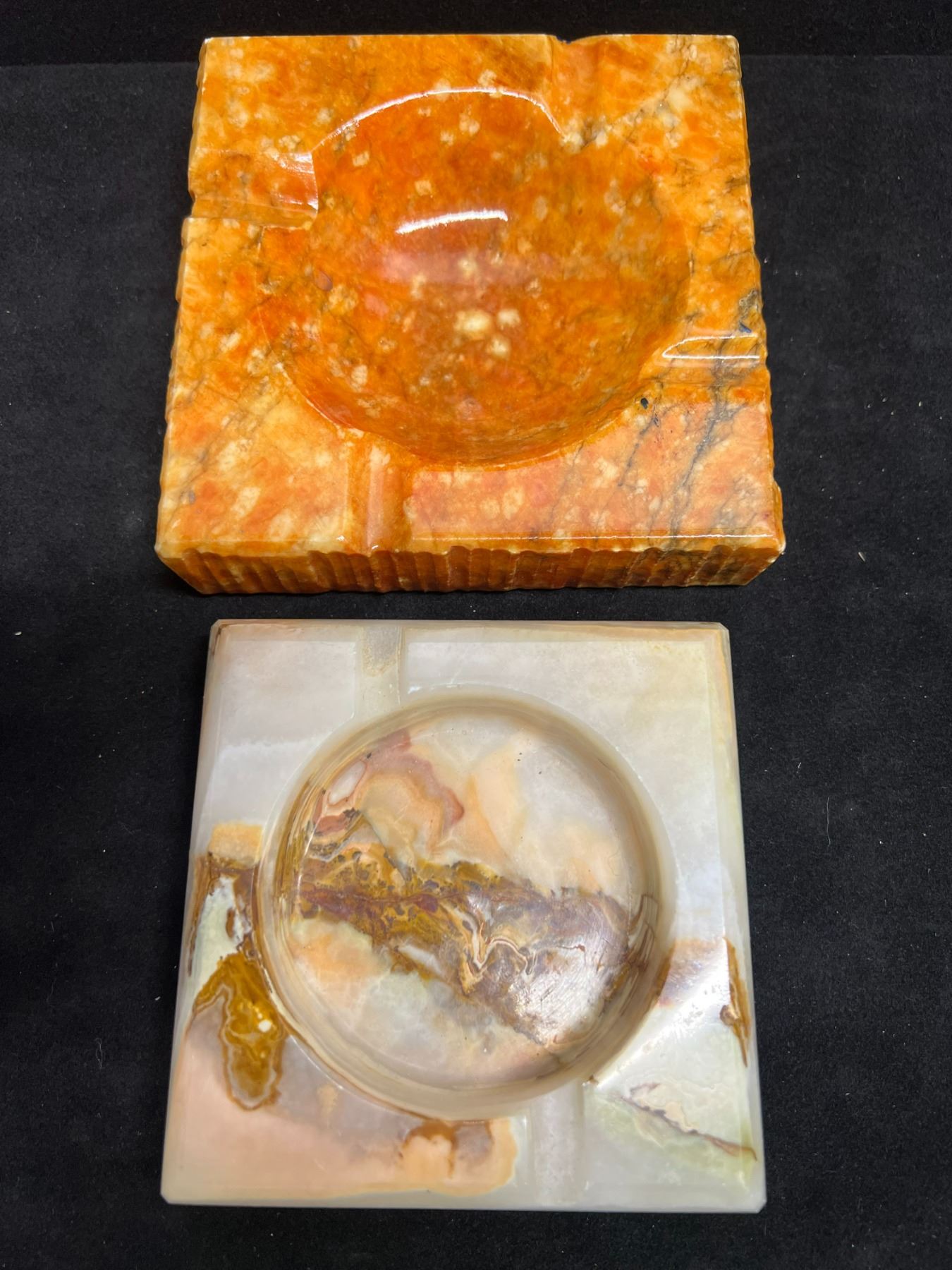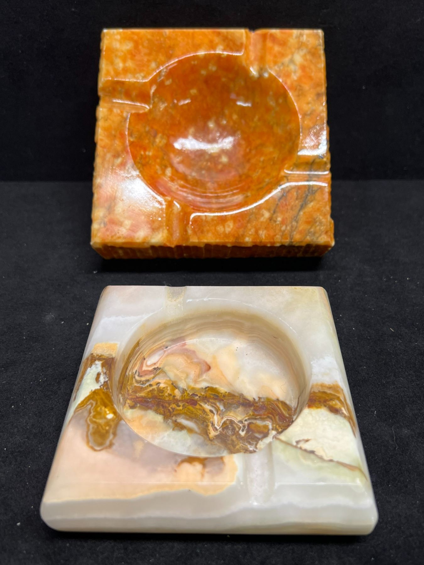 One has a genuine Alabaster Sticker on the bottom. The other could be onyx but not sure. 2 Vintage Alabaster & Onyx? Ashtrays (larger approx: 4.75 x 4.75" )