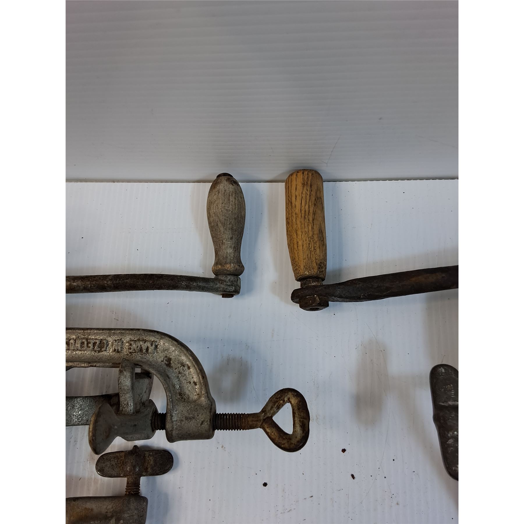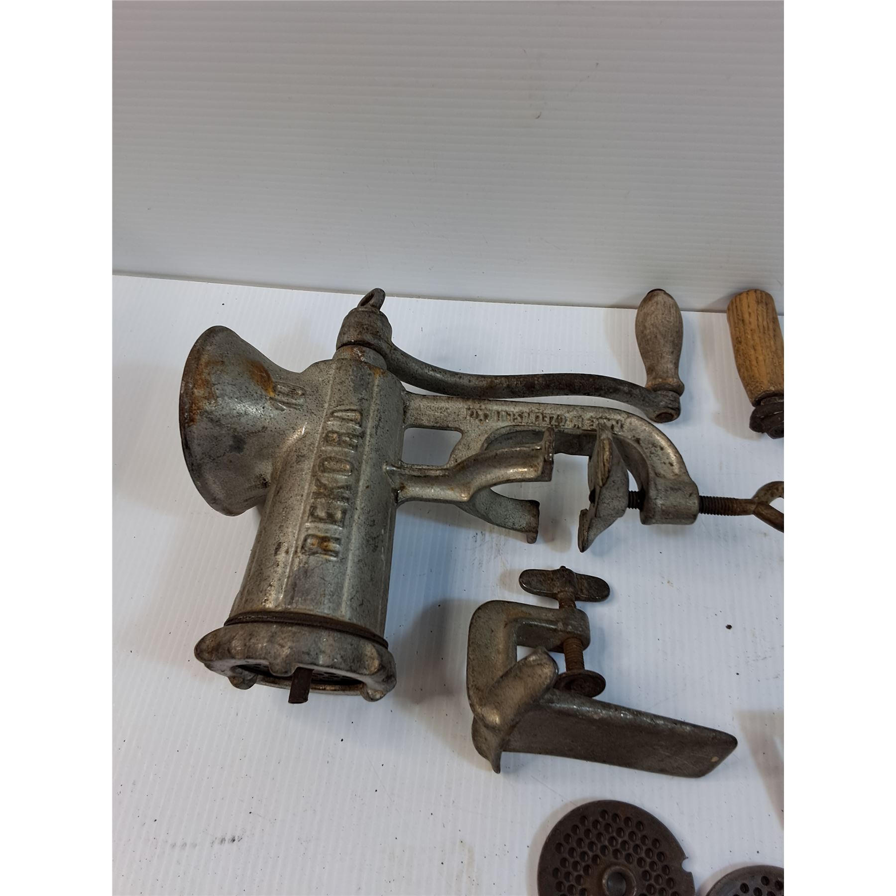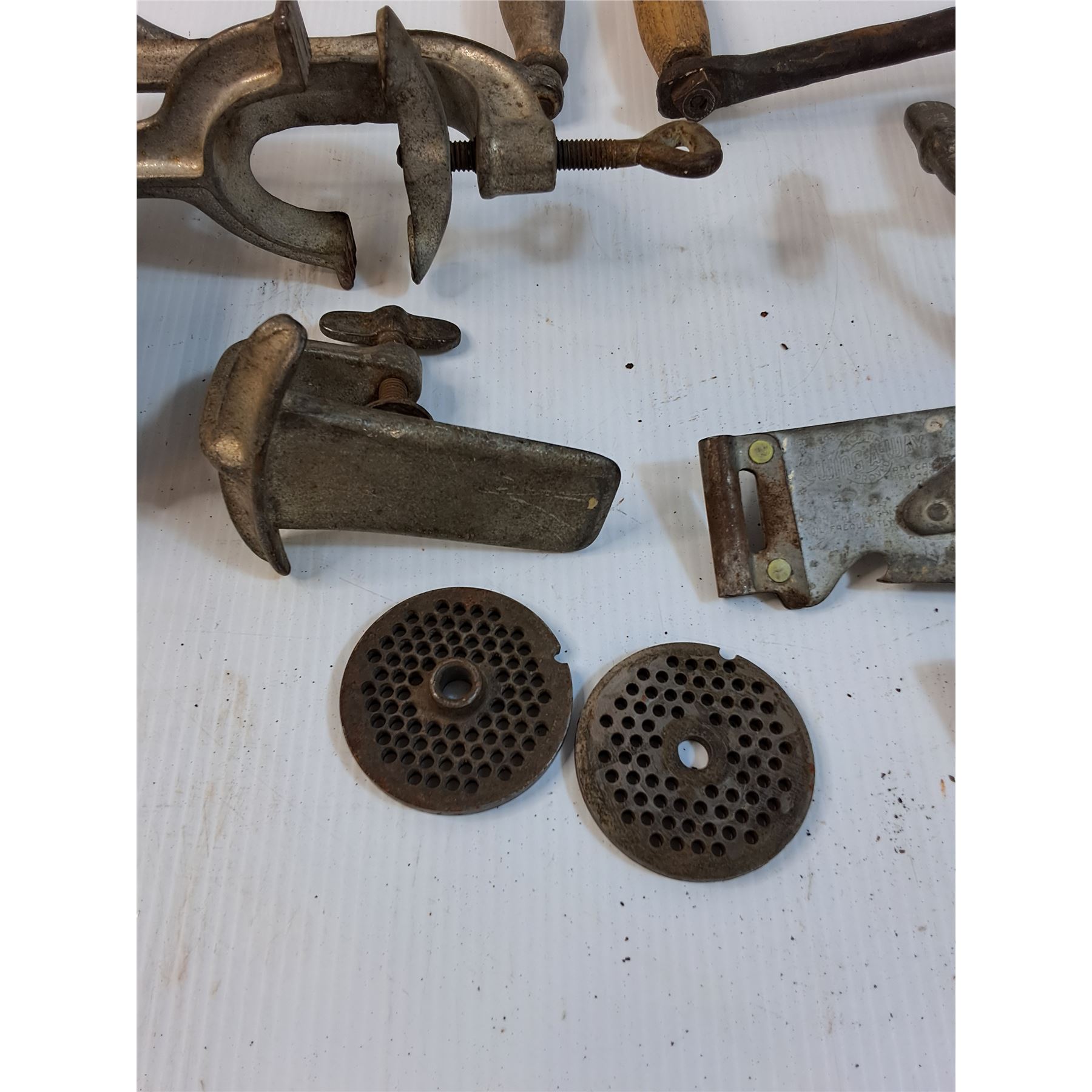 (2) Vintage Bench Mount Meat Grinders (Manual) & (2) Vintage Can Openers
